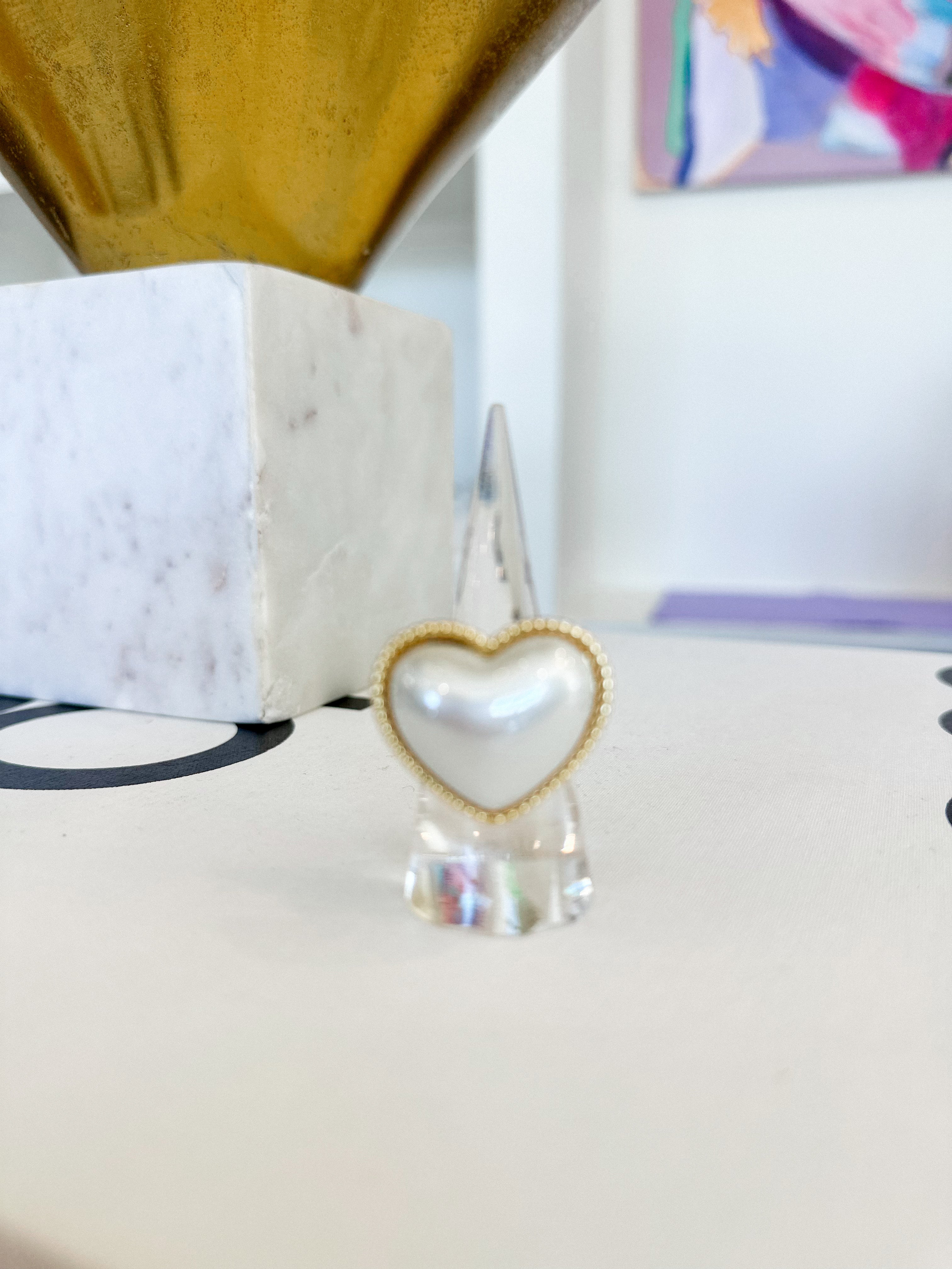 Elevate your elegance with the Heart Puff Pearl Ring, a delicate blend of timeless pearls and graceful heart-shaped design. This ring adds a subtle touch of sophistication to any ensemble, perfect for both everyday wear and special occasions. Its refined craftsmanship ensures comfort while making a meaningful statement of style and charm.