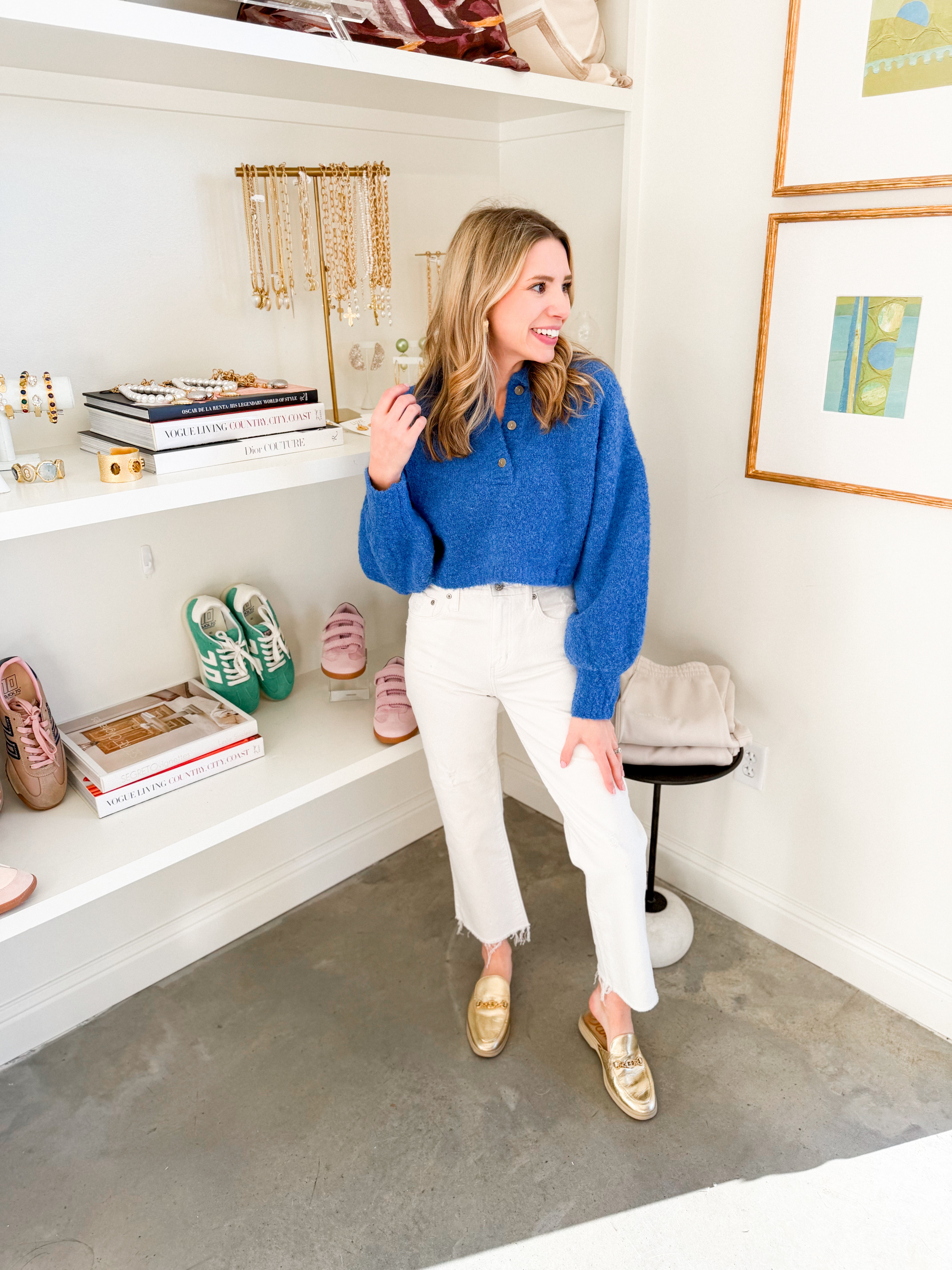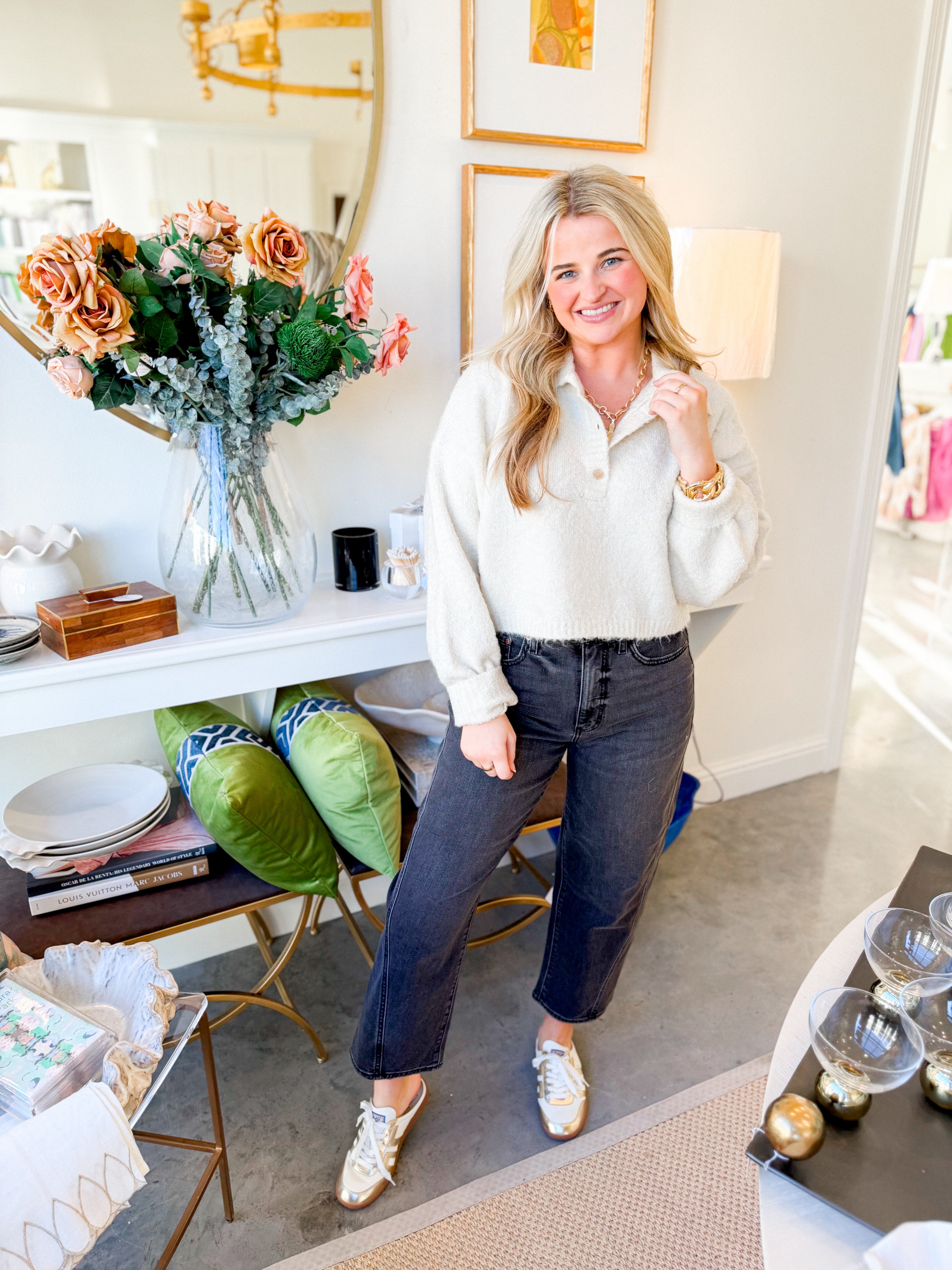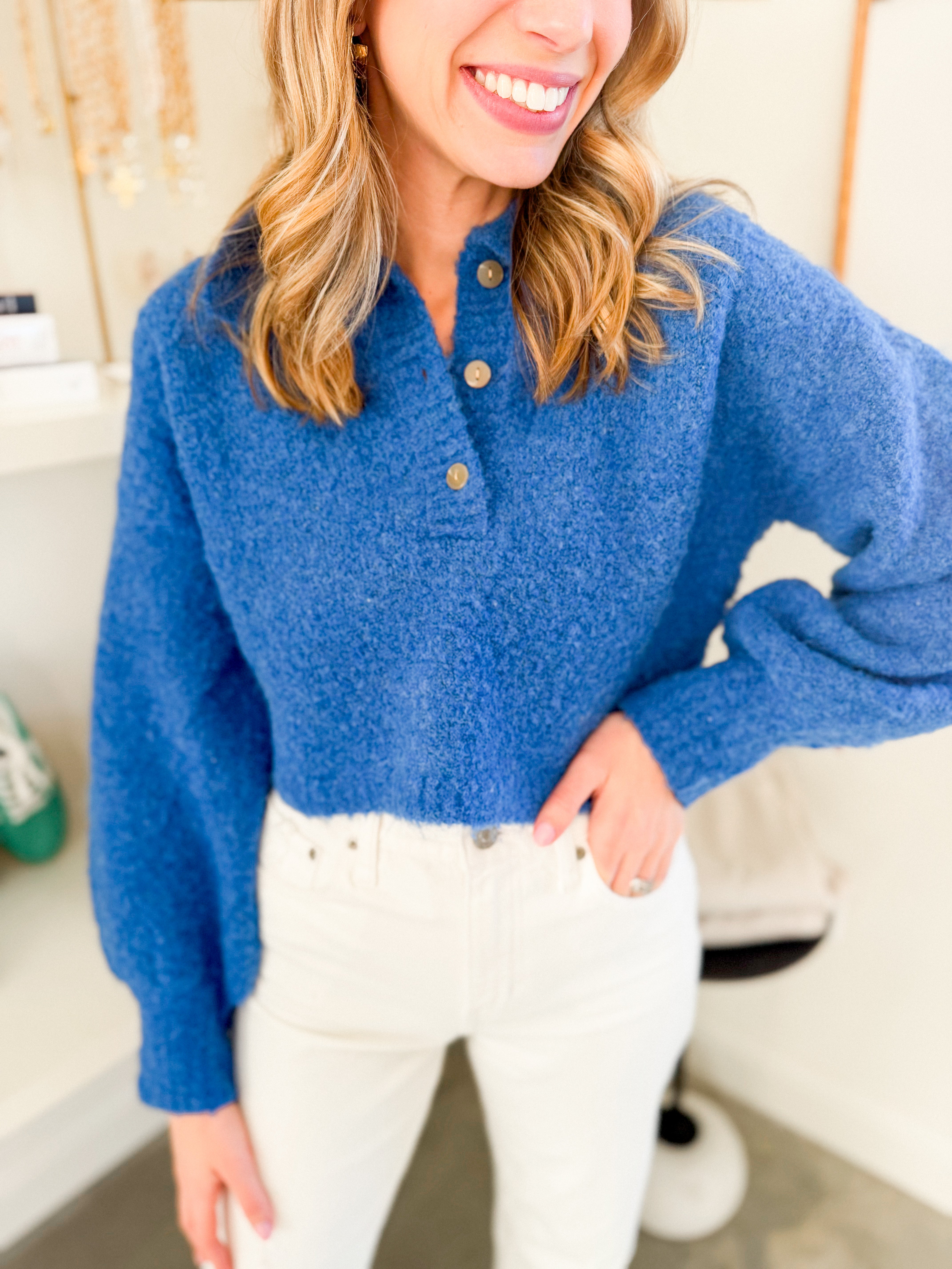 The Audrey Sweater combines timeless elegance with contemporary styling. This sophisticated piece features a structured collar and textured knit fabric that adds visual depth and dimension. The cropped silhouette pairs perfectly with high-waisted bottoms, while the long sleeves provide refined coverage. An effortless layering essential that transitions seamlessly from day to evening.