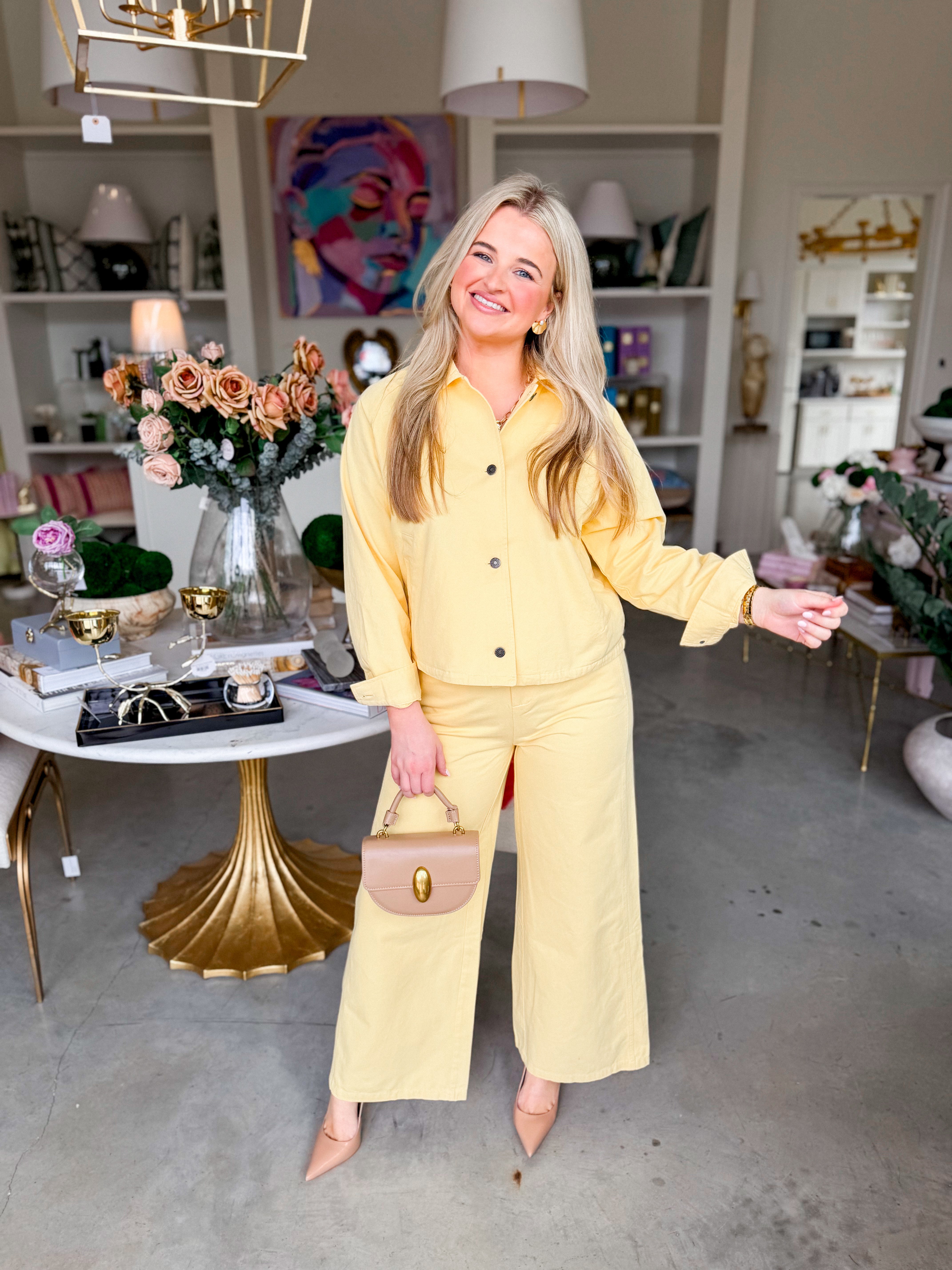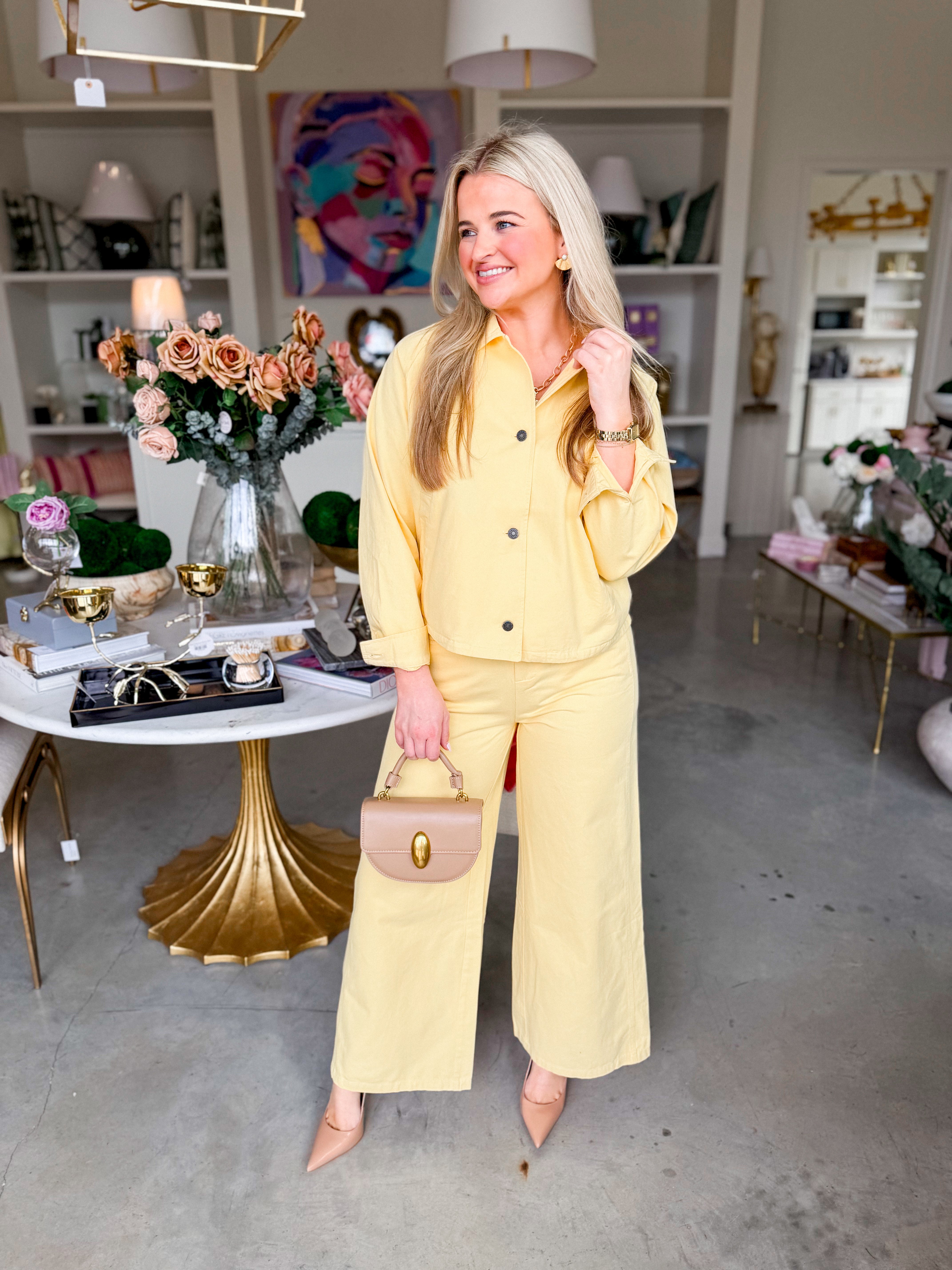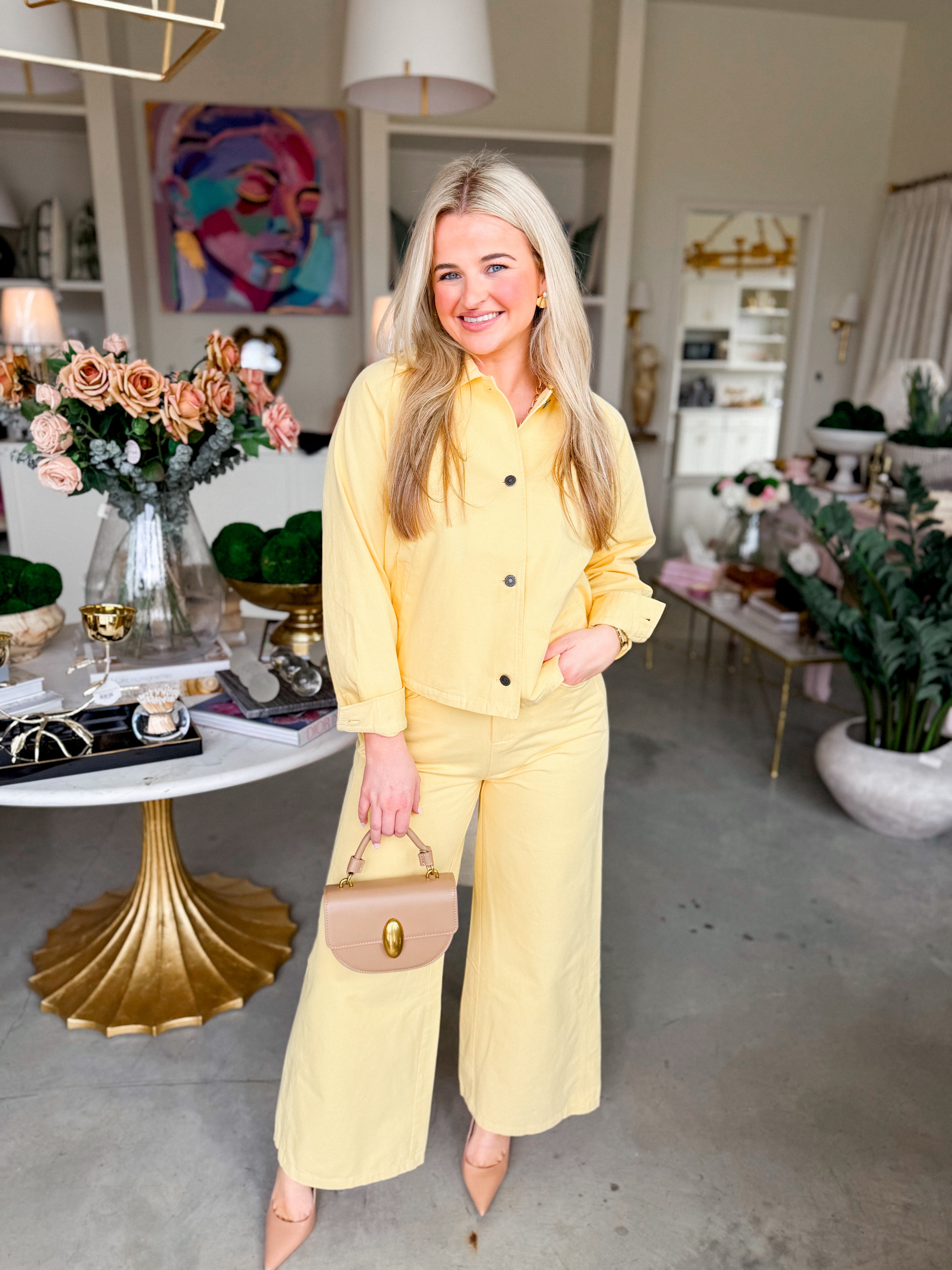 The Noa Jacket is a bright, effortless layer designed to elevate everyday looks. Crafted in a cheerful yellow hue, it features a button-up front and a loose, relaxed fit for easy, comfortable wear. Lightweight yet polished, this jacket is perfect for layering over tees, dresses, or tanks for a pop of color all season long. Looking for a yellow button-up jacket with a relaxed fit that adds color and effortless style to your everyday wardrobe?