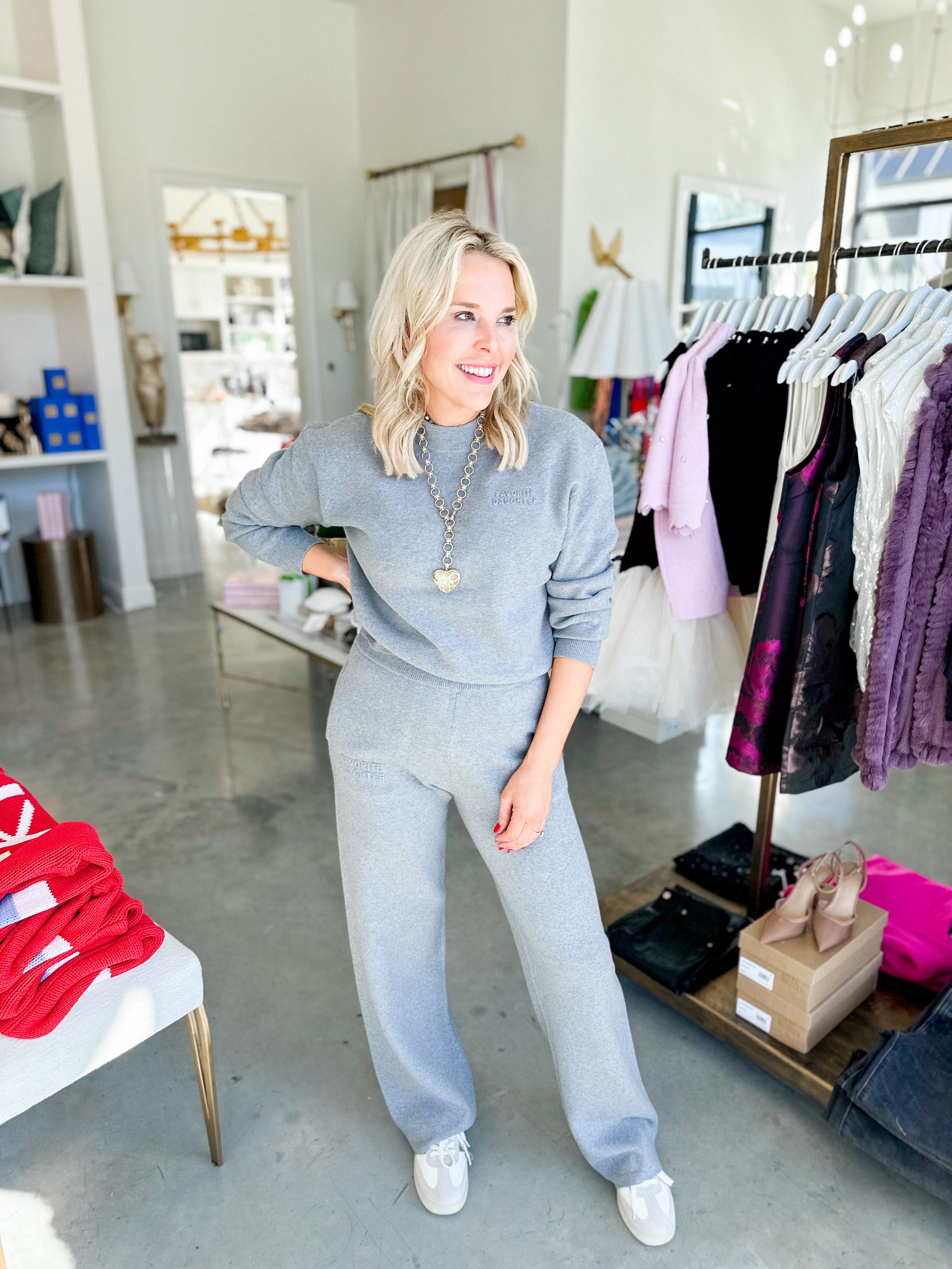 Elevate your casual wardrobe with the Fatigue Sisters Wide Leg Pant, crafted from a luxuriously soft cashmere-knit blend. These sophisticated joggers feature refined ribbed waistband and cuff detailing, paired with a subtle embossed Favorite Daughter logo for understated elegance. The relaxed wide-leg silhouette offers effortless comfort without compromising on style, making it an ideal choice for travel, lounging, or everyday wear. Pair with our matching Fatigue Sisters Hoodie to complete a polished, coordinated ensemble.