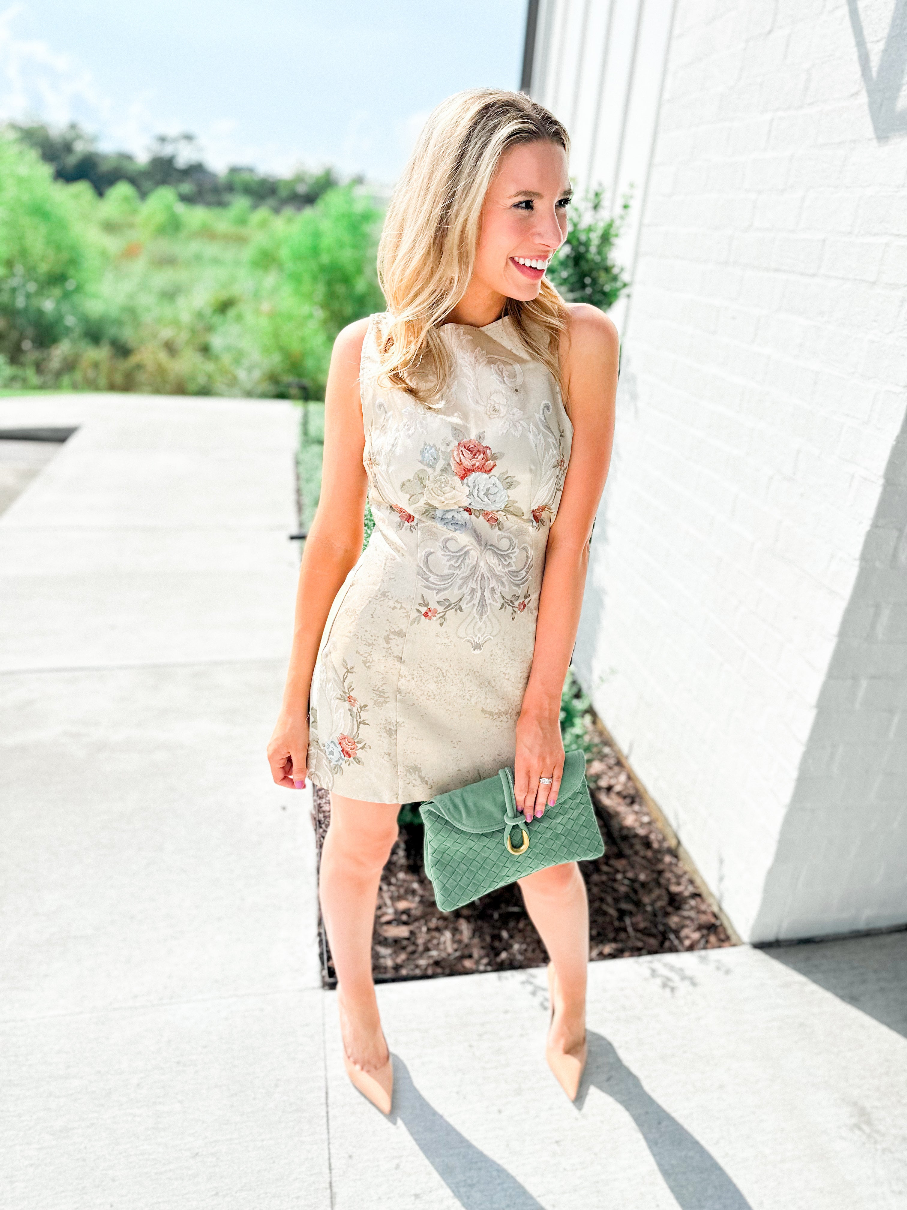 Step into a garden of style with the Floral Kate Dress. Featuring a charming brocade floral pattern, this dress brings a playful touch to your wardrobe. Perfect for twirling through sunny days or making a statement at your next event, its elegant texture and lively design ensure you stand out with effortless charm.