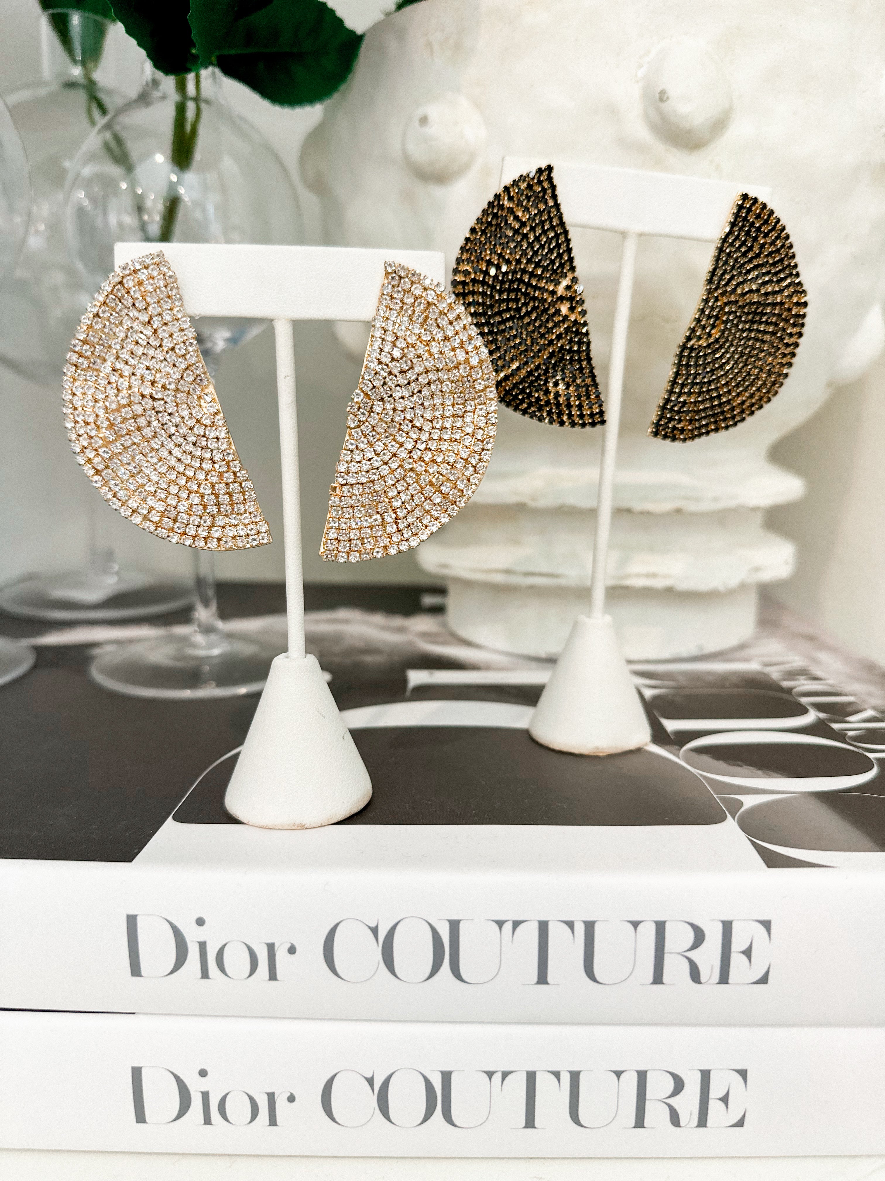 Geometric sparkle meets refined elegance with these half-circle rhinestone earrings. Precision-set stones catch light from every angle, creating a subtle shimmer that elevates any occasion. The curved silhouette offers a modern twist on classic glamour, while the carefully curated stone placement ensures sophistication over excess. A versatile choice that transitions effortlessly from professional settings to evening events—perfect for those who appreciate understated radiance.