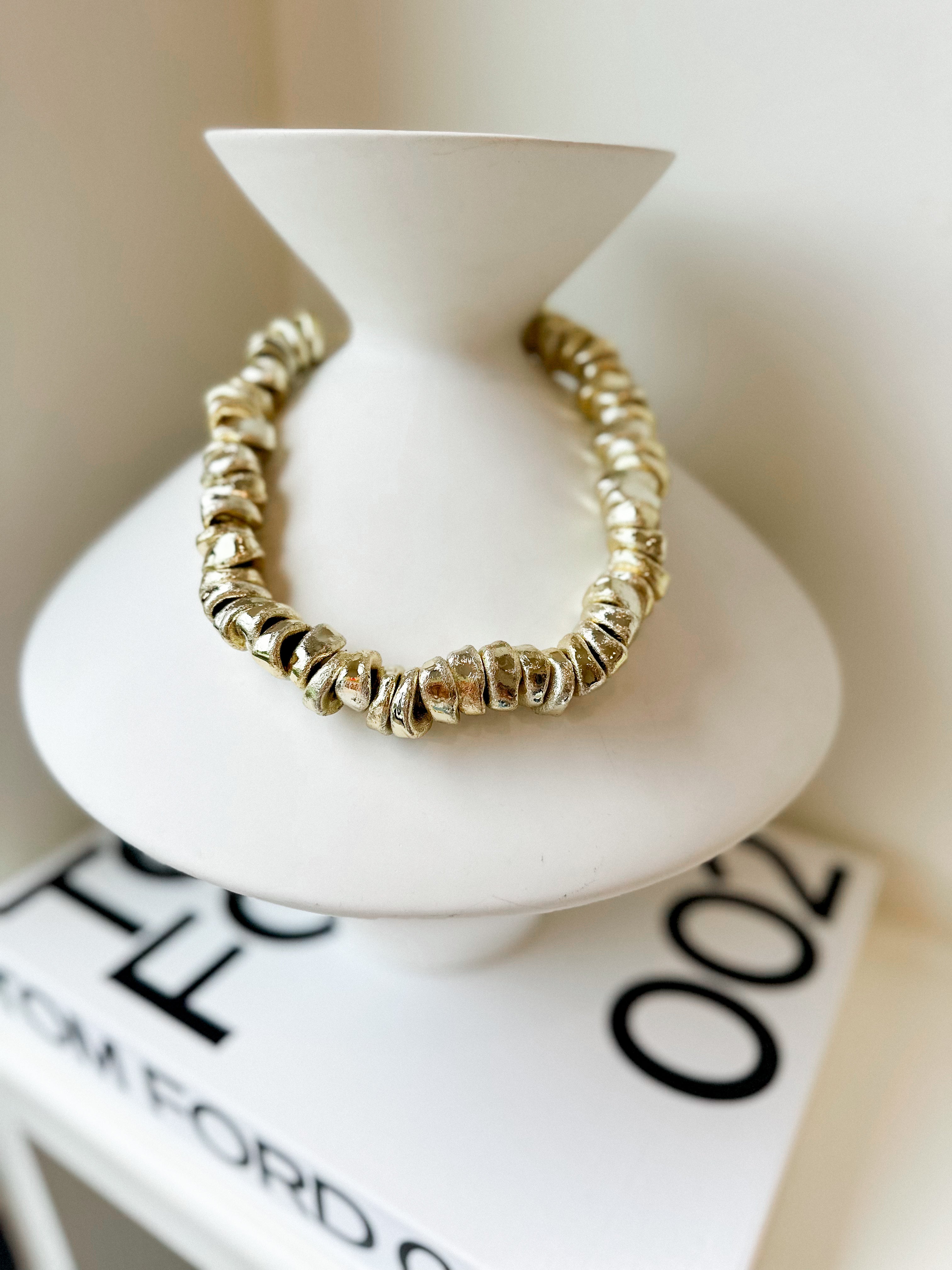 Add a bold touch to your look with the Golden Dreams Necklace. This chunky gold beaded necklace brings playful charm and effortless style to any outfit. Perfect for layering or wearing solo, it’s your new go-to for turning heads and sparking compliments.
