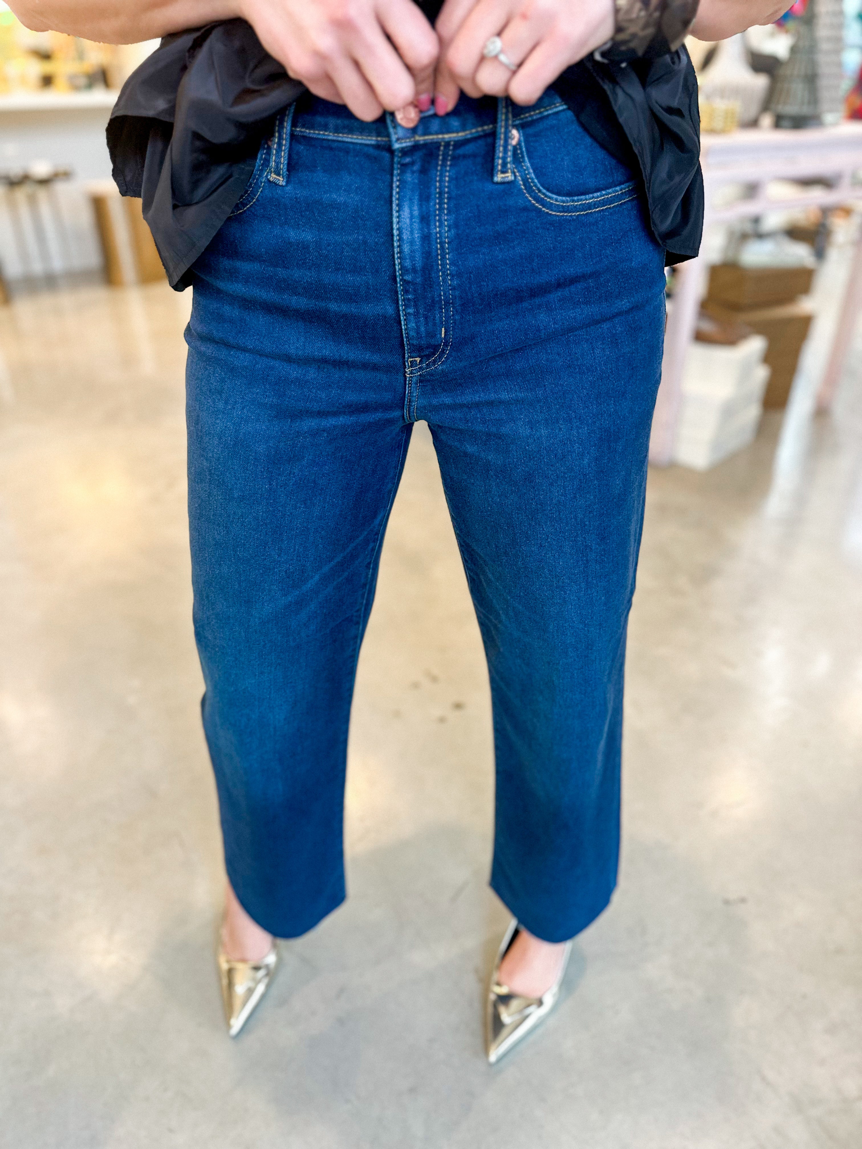 Elevate your denim collection with the Magic Hour Pleaser Jean, a dark wash silhouette that commands attention. The high-rise cut flatters your frame while the wide ankle provides a modern, relaxed finish. Crafted for those who appreciate timeless style with contemporary edge, this jean transitions seamlessly from day to evening. A sophisticated choice for the discerning wardrobe.