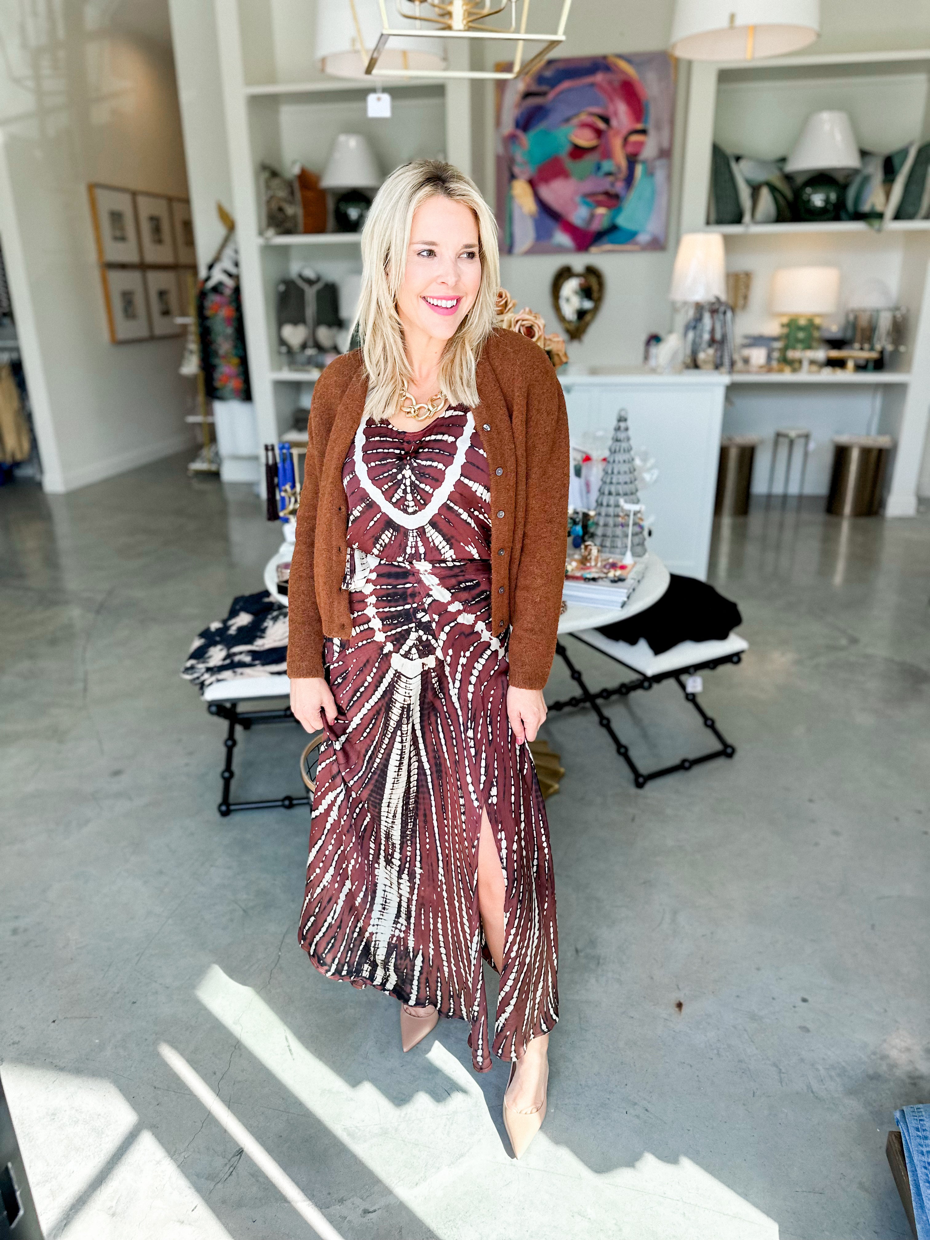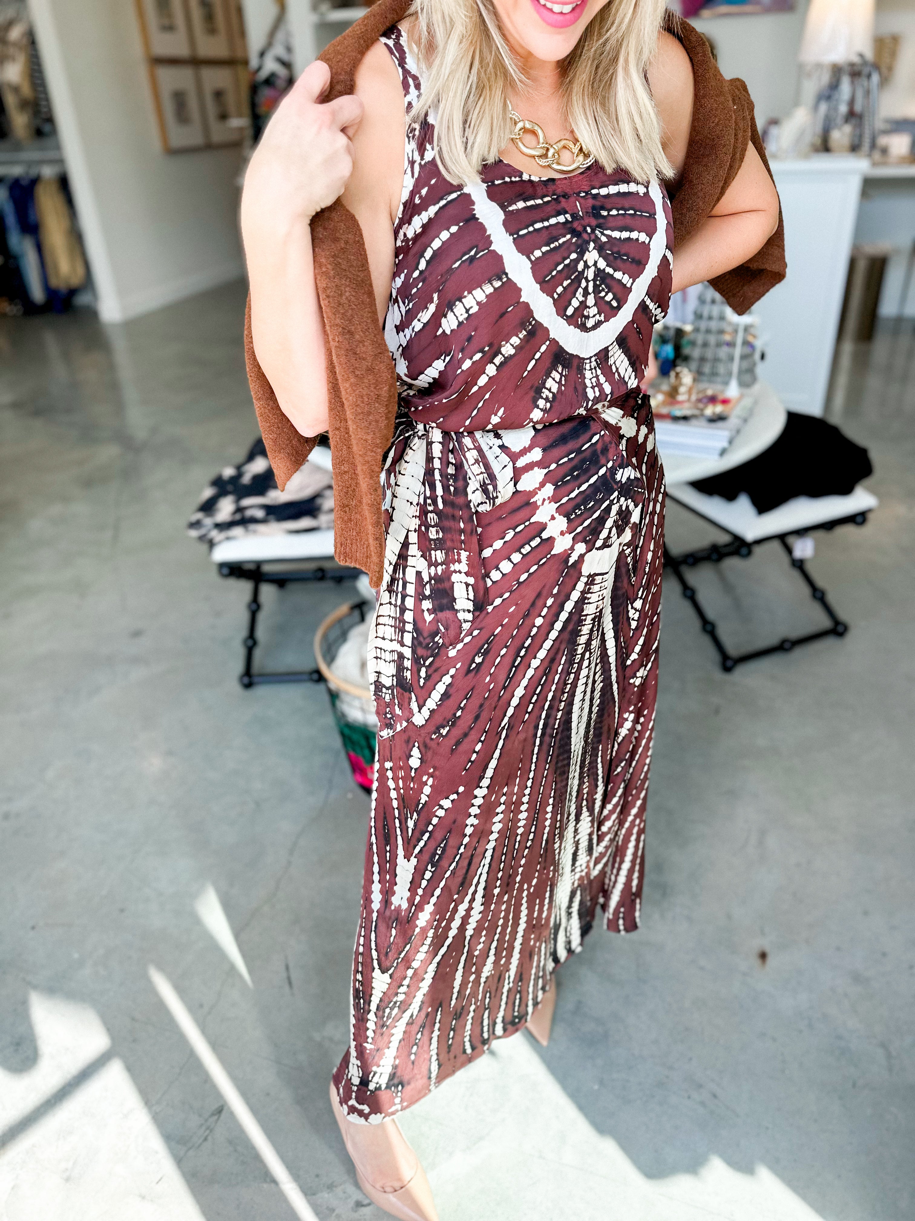 The Nari Tank embodies effortless elegance with its timeless design and luxurious silky fabric. This versatile essential transitions seamlessly from day to evening, offering endless styling possibilities whether worn solo or layered beneath your favorite pieces. Its refined cut flatters every silhouette, making it the foundation piece every wardrobe deserves. Pair with the Sepia Arla Maxi Skirt for an understated, polished look.
