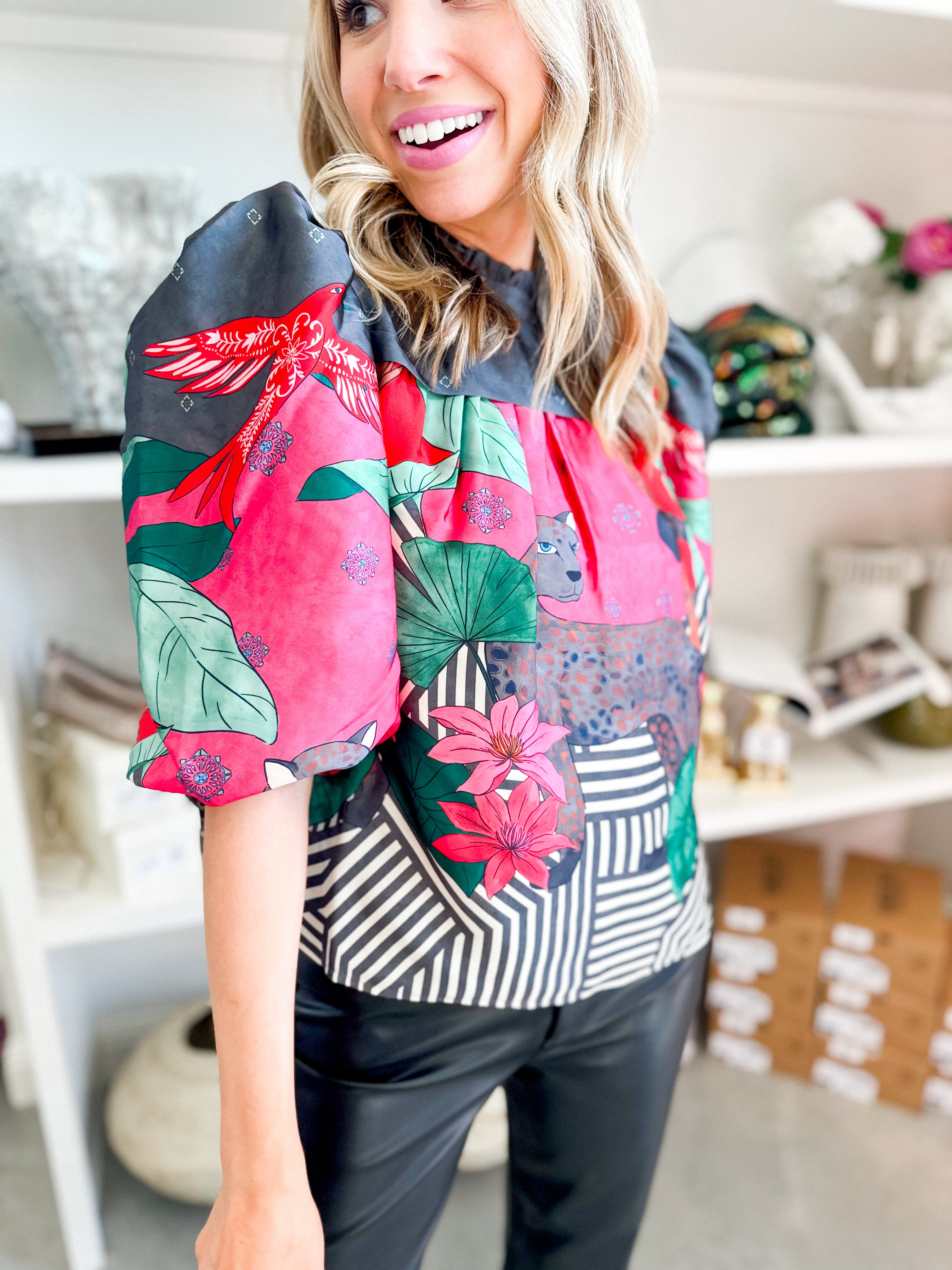 Introducing the Colony Stripe Mel Top - a customer favorite with a vibrant multicolor design. Embrace the beauty of diversity with this stylish top, perfect for any occasion. Elevate your wardrobe with this exclusive piece, a must-have for the fashion-forward individual.