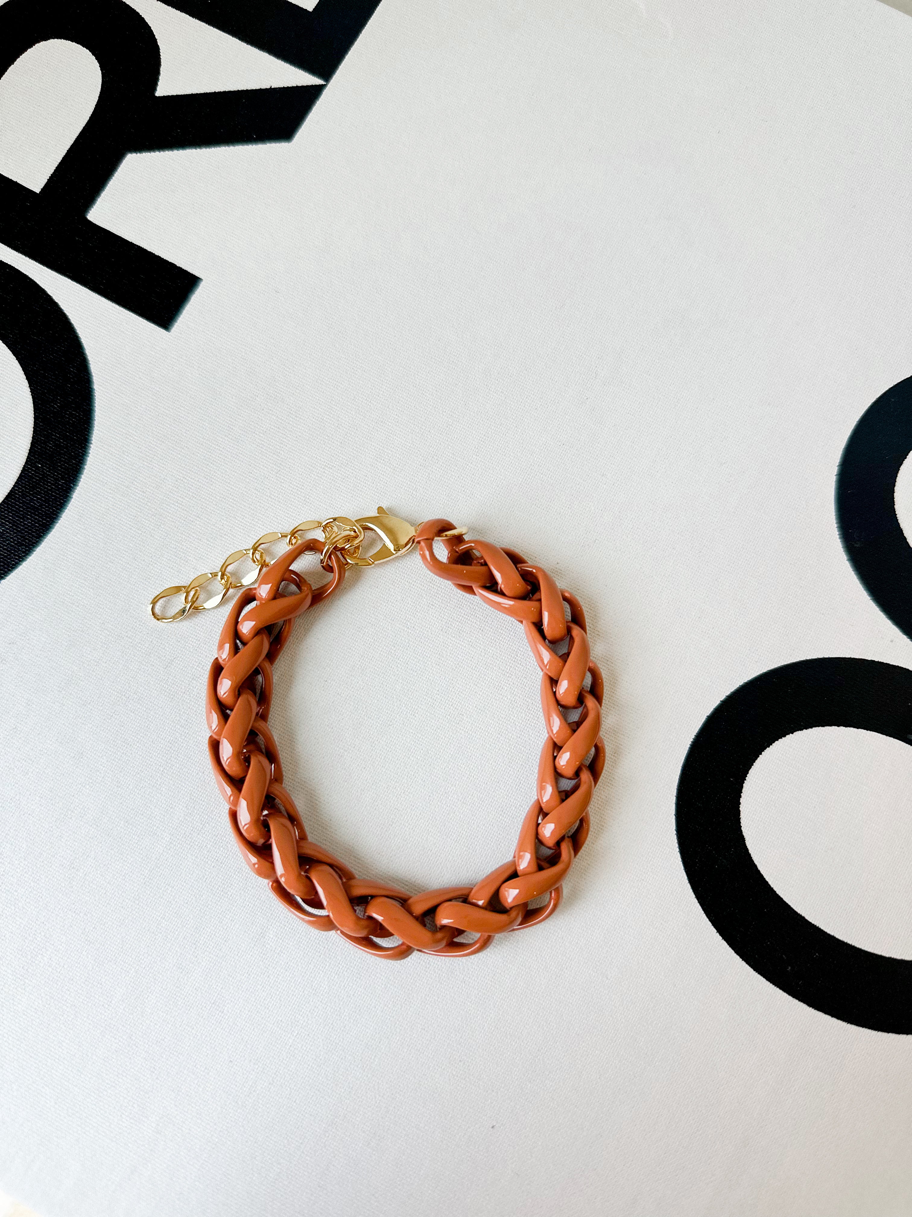 Add a pop of color and charm to your wrist with this playful color-coated chain bracelet. Perfect for stacking or wearing solo, it adds a fun, vibrant touch to any outfit. Lightweight and eye-catching, it’s your new go-to accessory for everyday style.