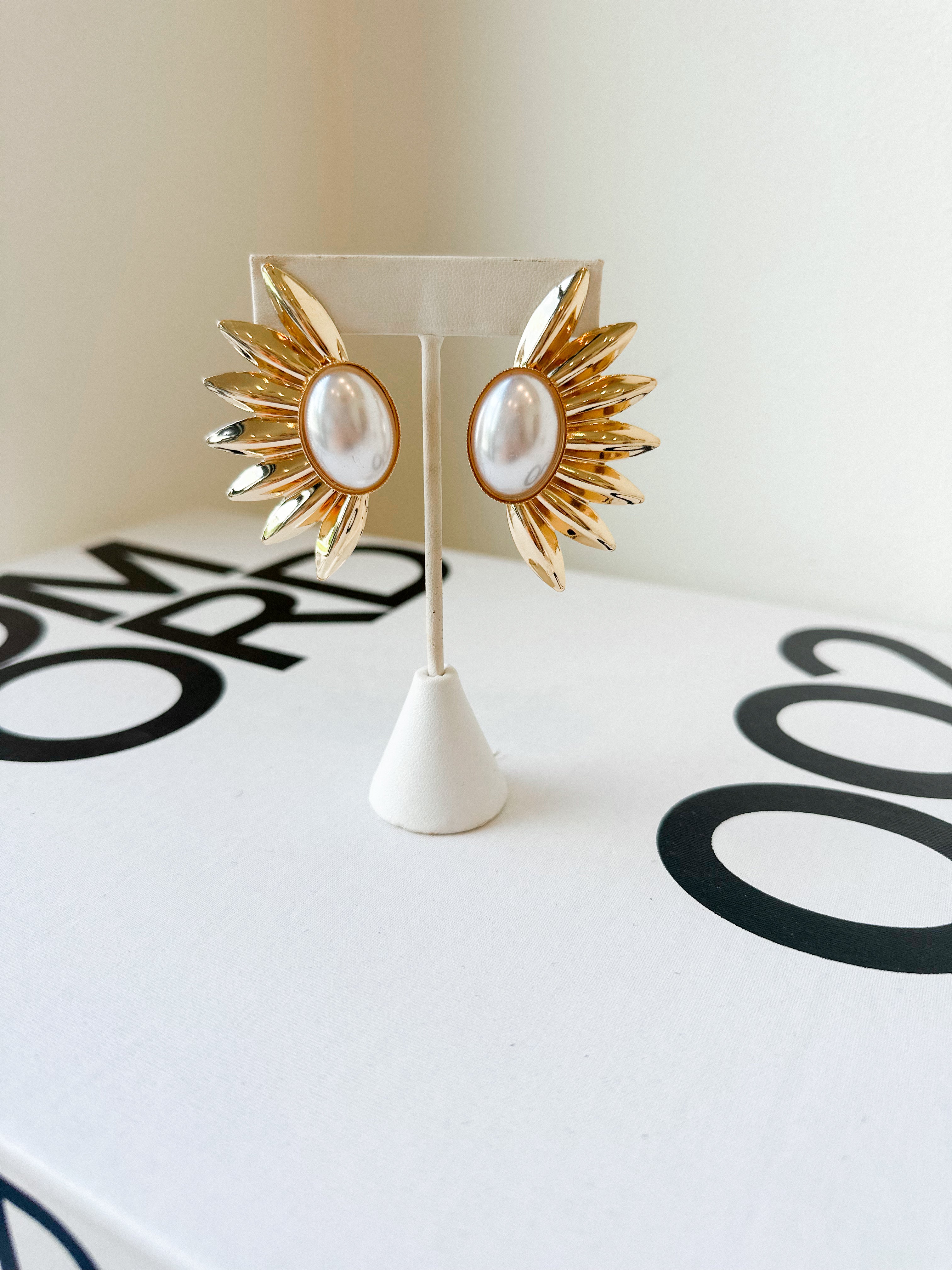 The Starburst Gold Earrings feature a stunning stone centerpiece accented by a radiant burst of gold, creating a captivating blend of elegance and brilliance. Designed to catch the light beautifully, these earrings add a refined touch to any outfit, perfect for special occasions or elevating everyday sophistication.