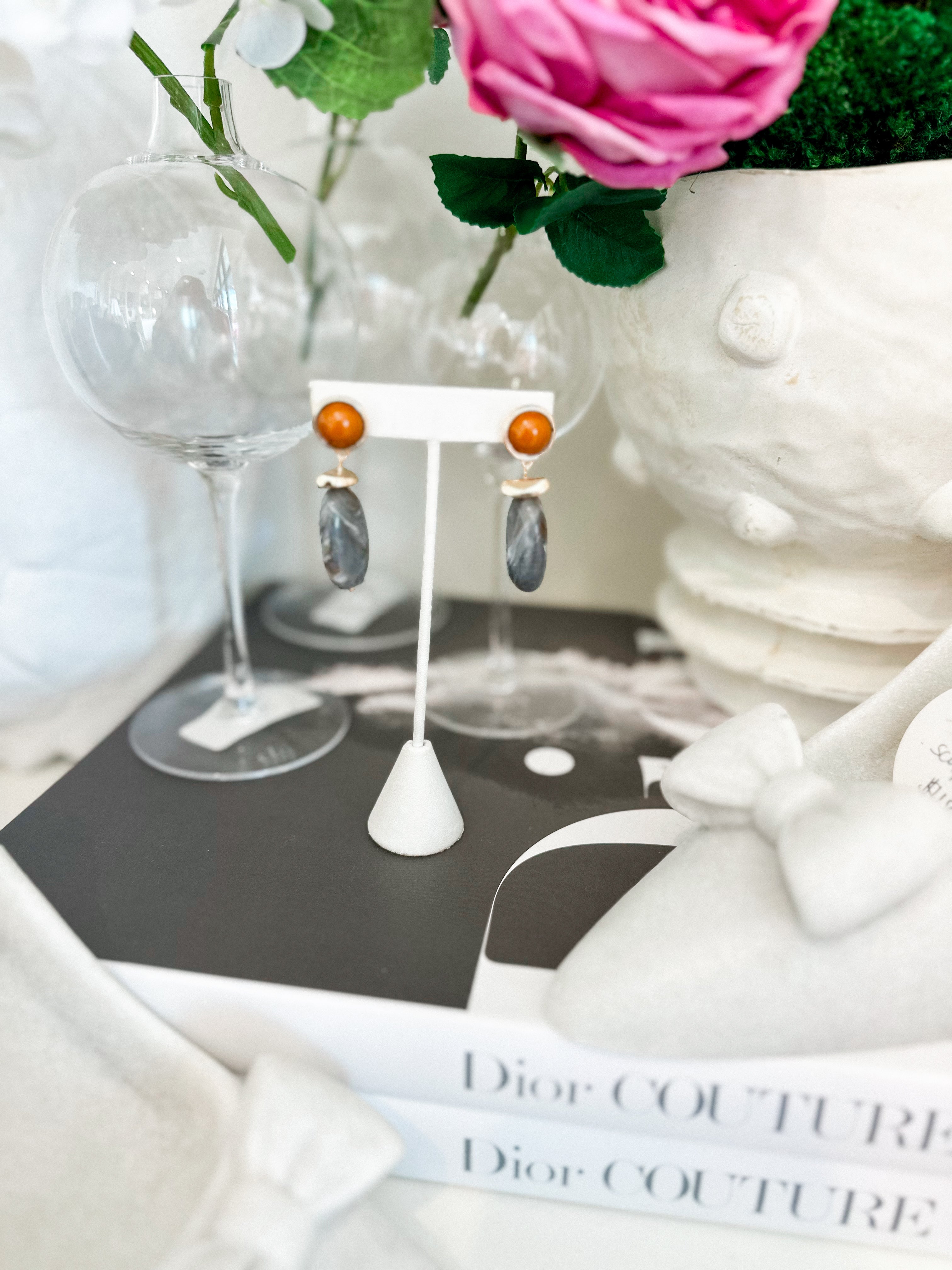 Embrace natural beauty with these delicate stone drop earrings, where understated design meets timeless appeal. The carefully selected stone catches light with subtle radiance, creating an effortless sophistication that complements any occasion. Lightweight and versatile, these earrings offer the perfect balance of presence and restraint for the modern woman who values quality craftsmanship and refined aesthetics.