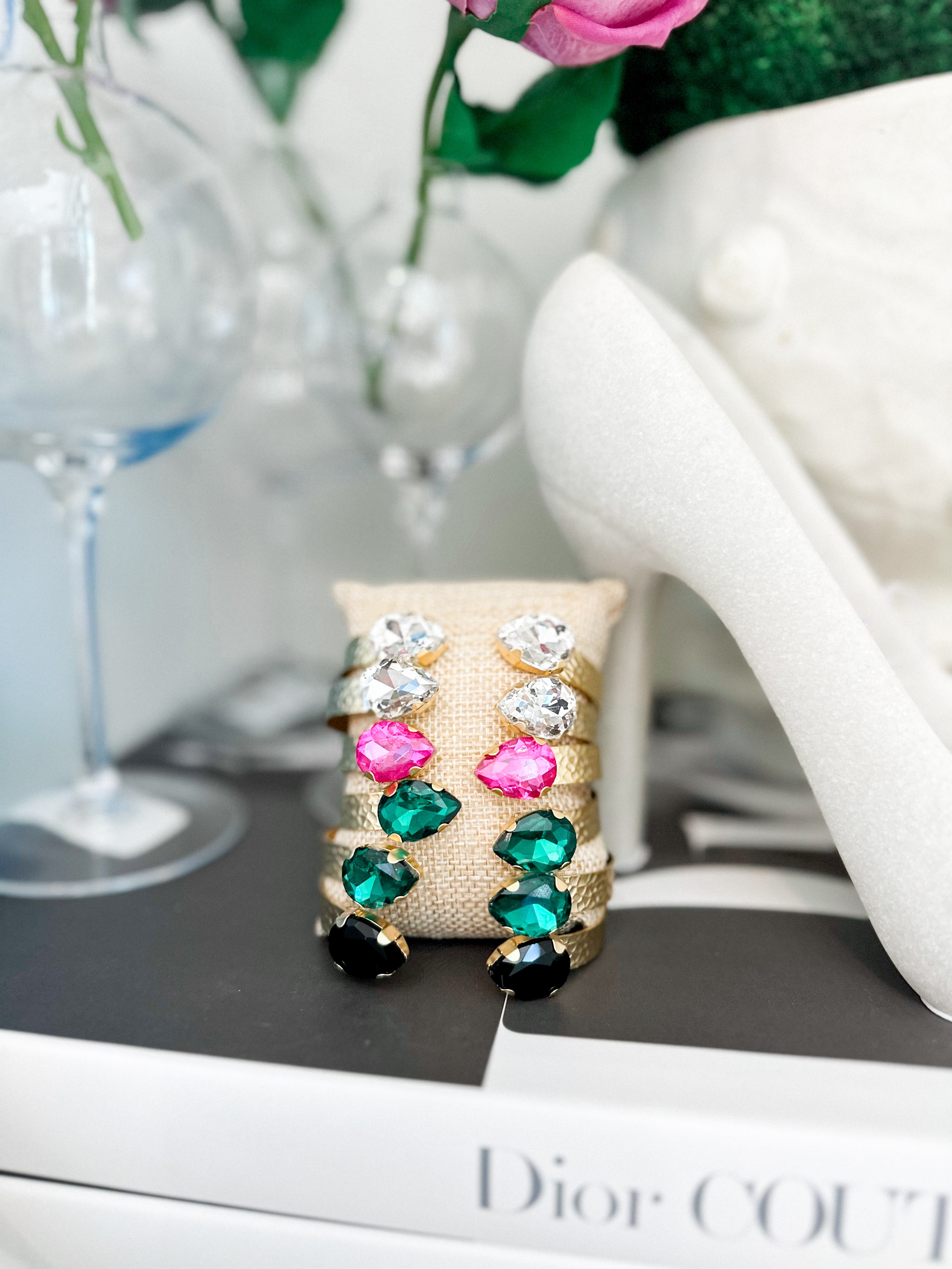 The Trunk Show Tiana Cuff showcases exquisite rhinestone detailing arranged in an elegant teardrop design along a polished metal band. Each crystal sparkles brilliantly, creating a luminous effect that elevates any ensemble with understated glamour. This refined cuff seamlessly transitions from evening affairs to sophisticated daytime styling, offering versatility without compromising on elegance. A timeless investment piece that brings radiant beauty and refined taste to your jewelry collection.