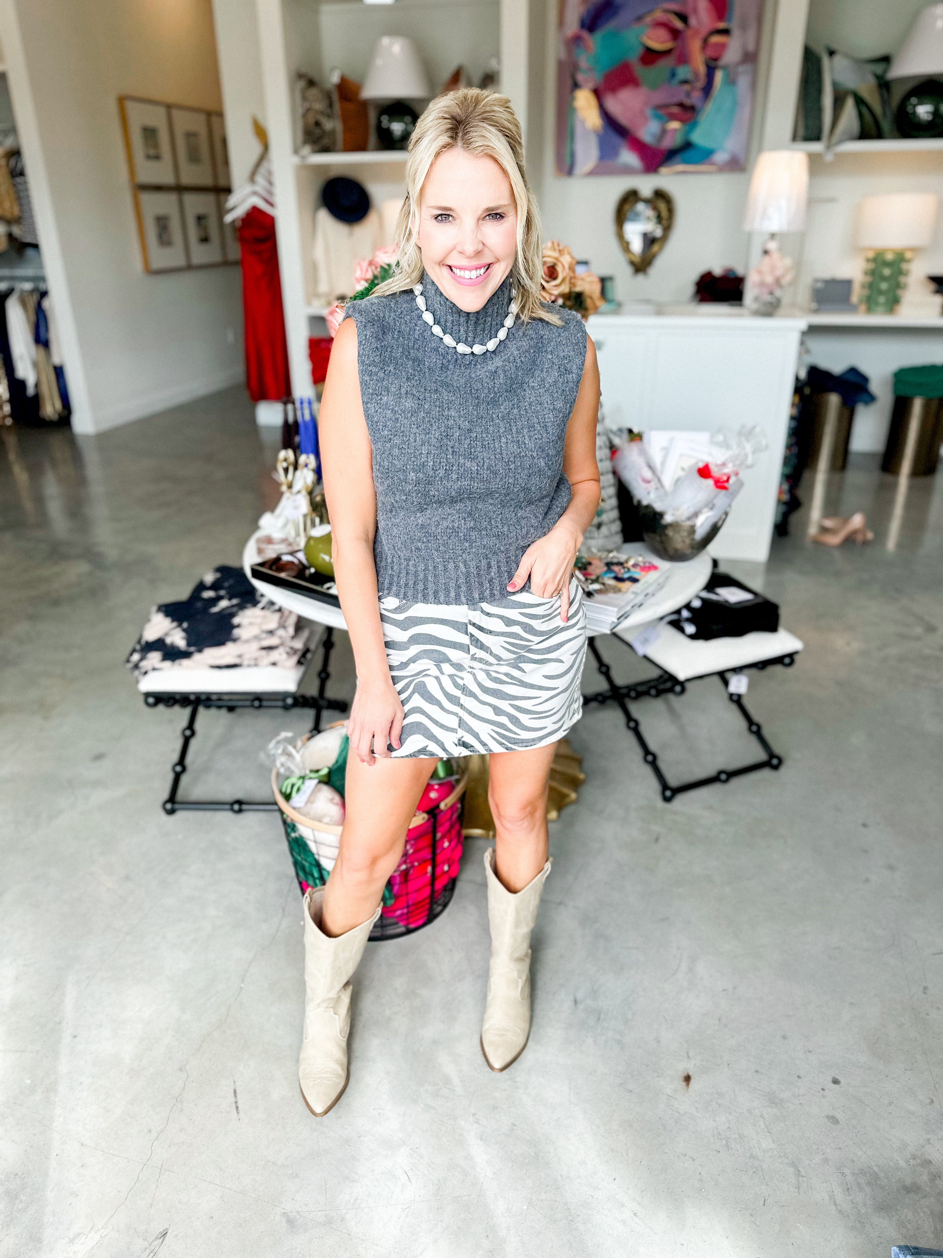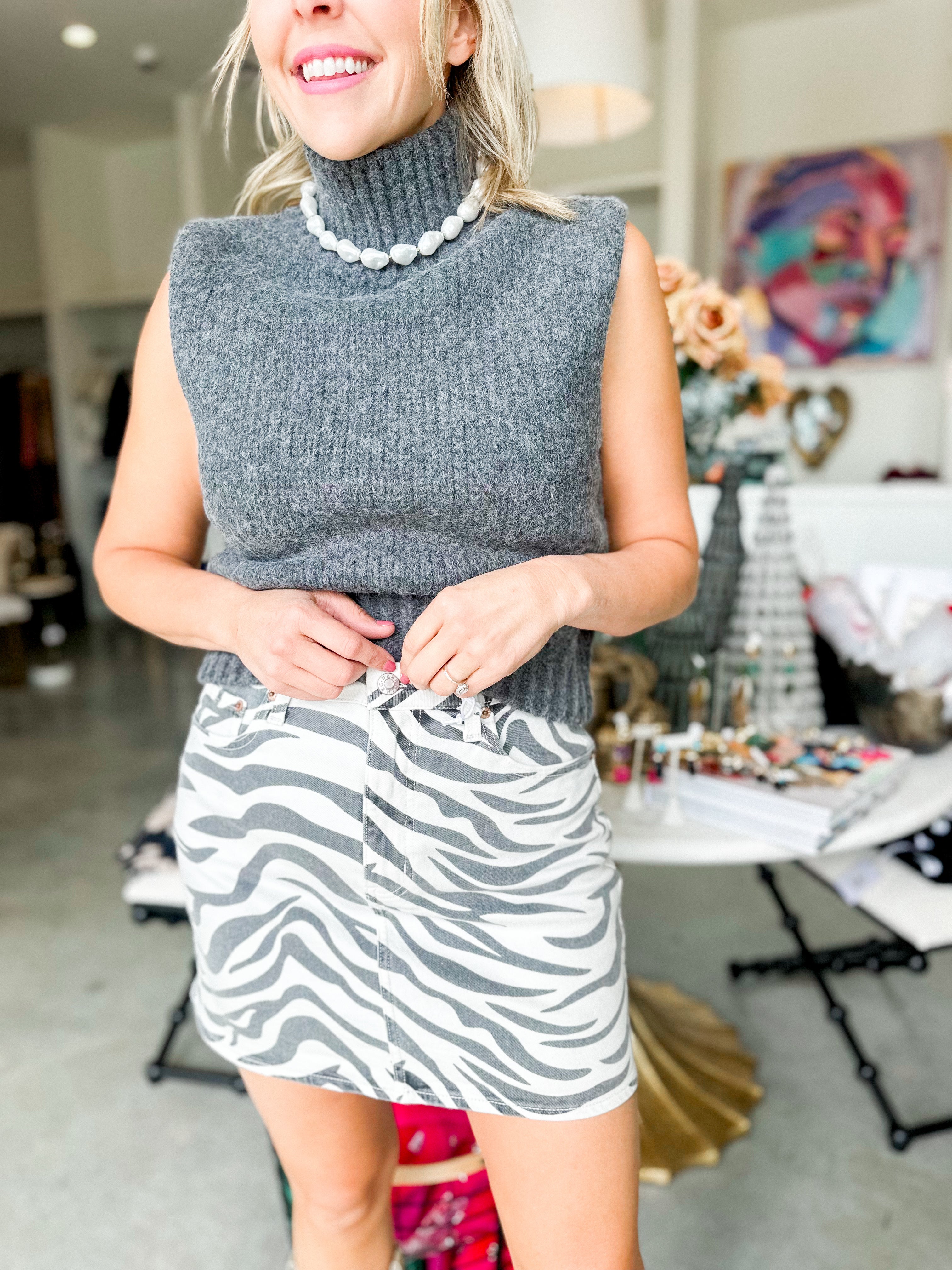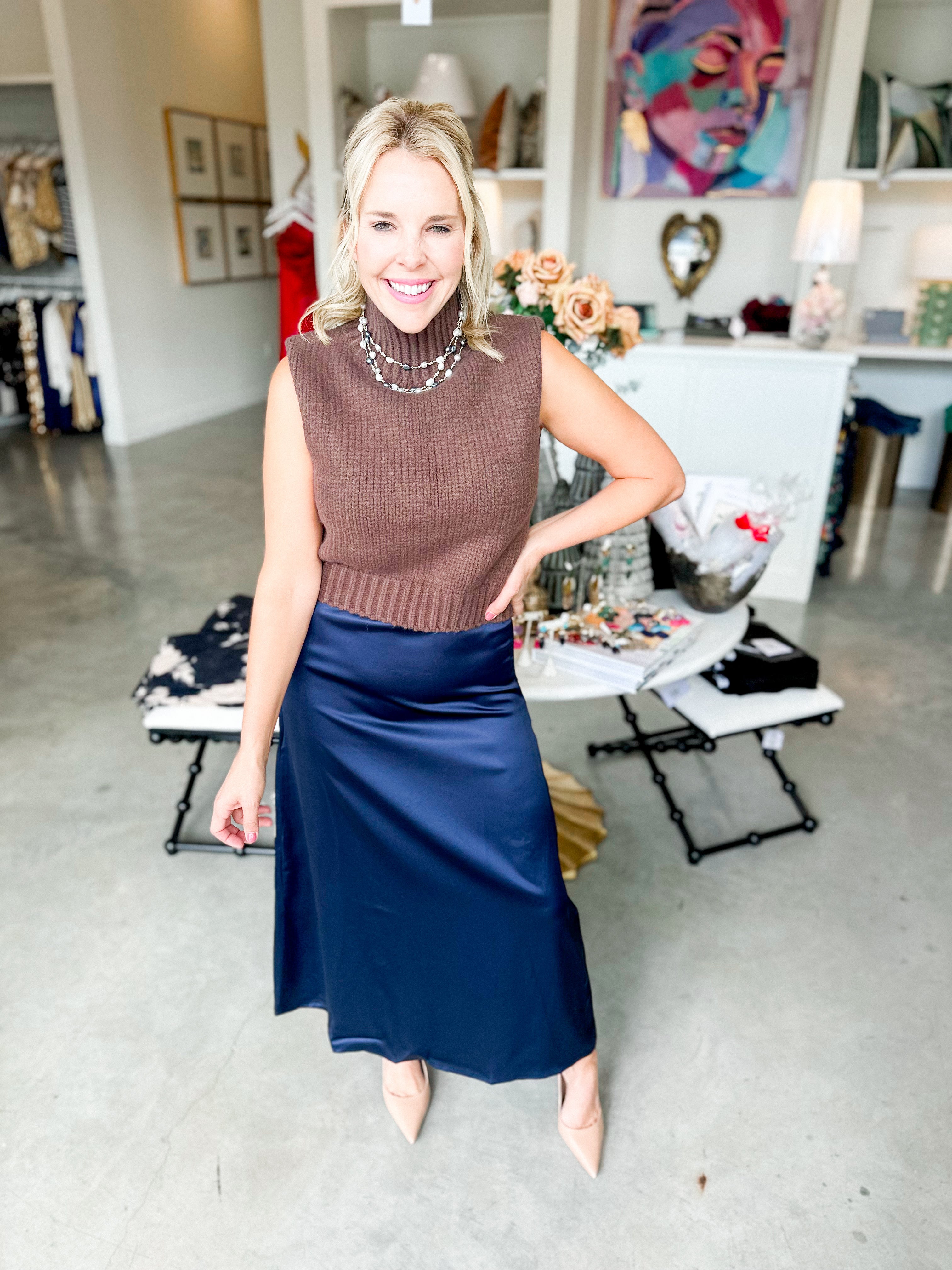 The George Knit Vest combines timeless elegance with modern versatility. This sophisticated turtleneck design features a refined knit construction that layers beautifully over long-sleeve tops or stands alone as a polished statement piece. The fitted silhouette flatters while the premium knit fabric provides gentle warmth and all-day comfort. Perfect for elevating casual outfits or adding dimension to professional looks, this vest transitions seamlessly from office to weekend wear.