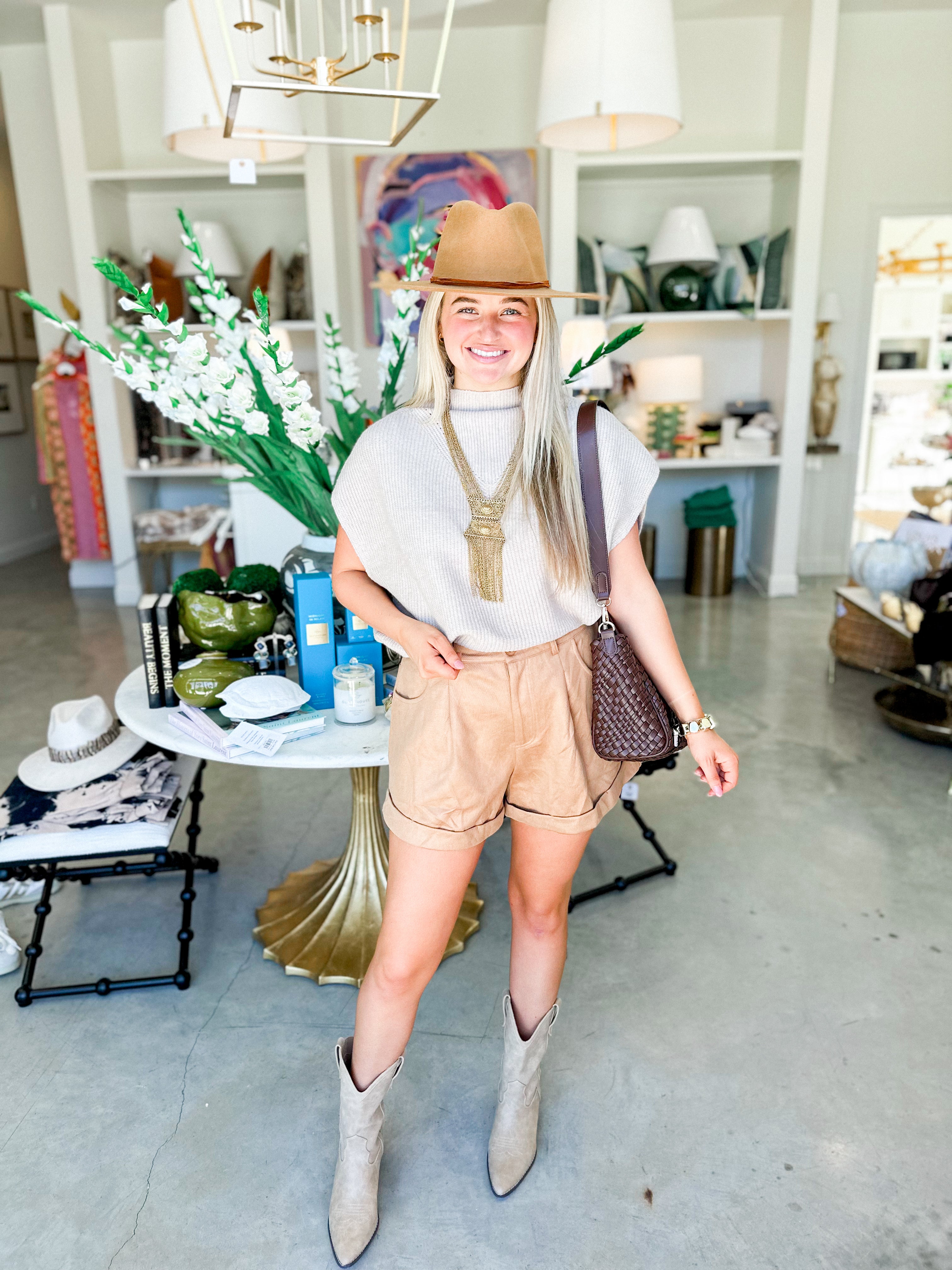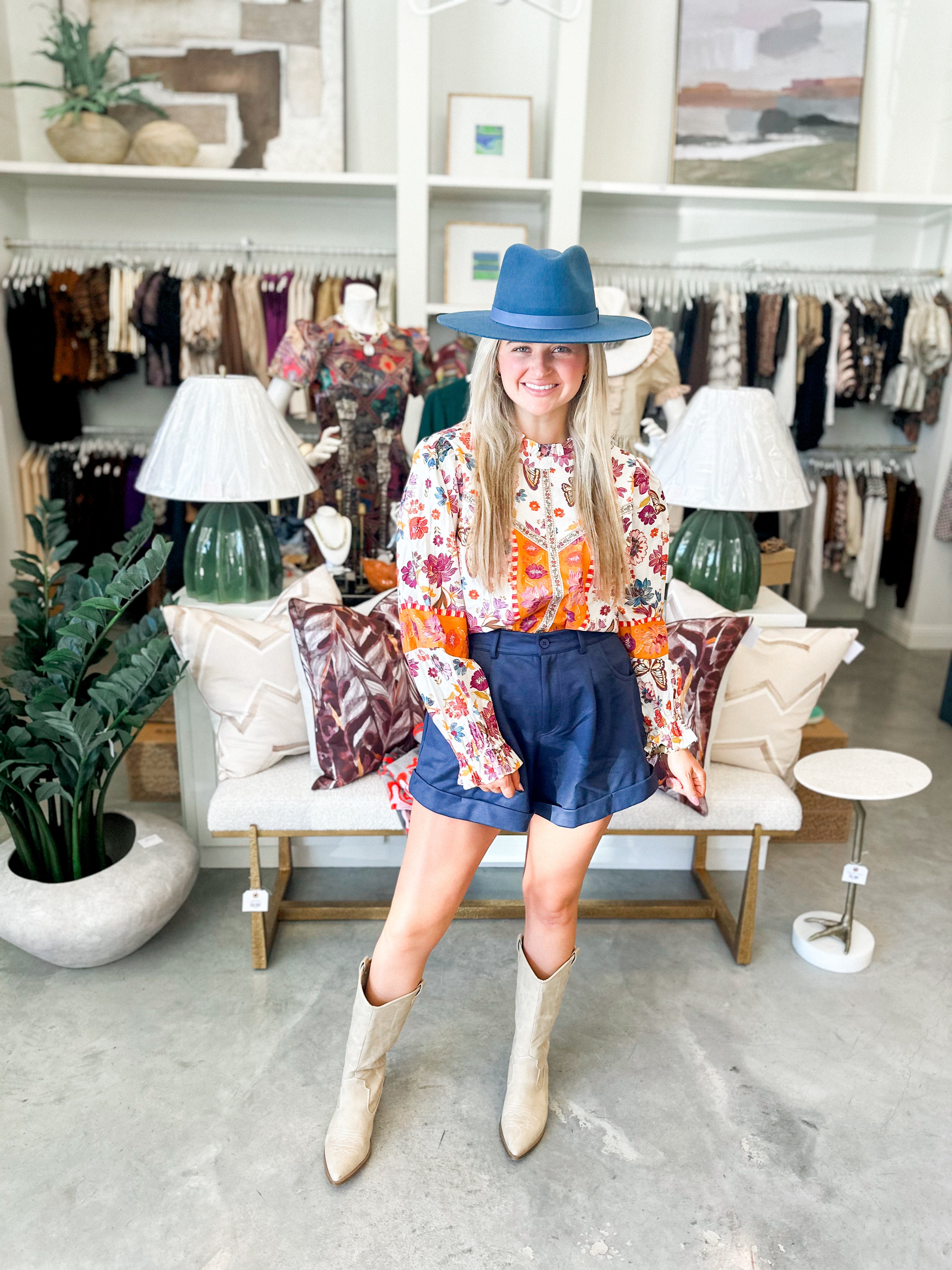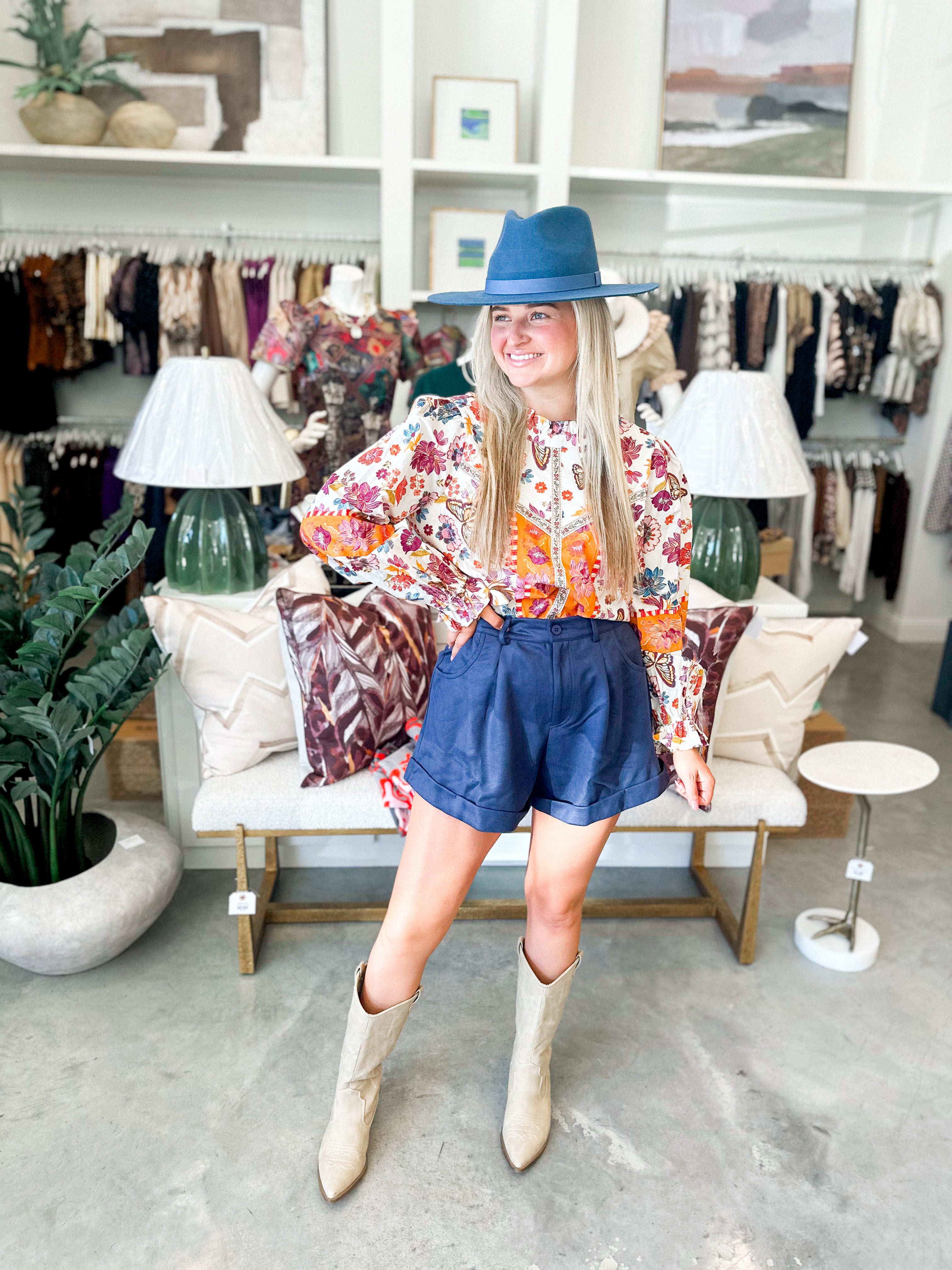 Elevate your warm-weather wardrobe with the Maeve Shorts! These high-waist pleated shorts come in stylish camel and navy, perfect for adding a chic twist to any outfit. Playful yet polished, they’re designed to flatter your silhouette while keeping you cool and comfortable all day long. Whether you're dressing up or down, Maeve Shorts will be your new go-to for effortless style.