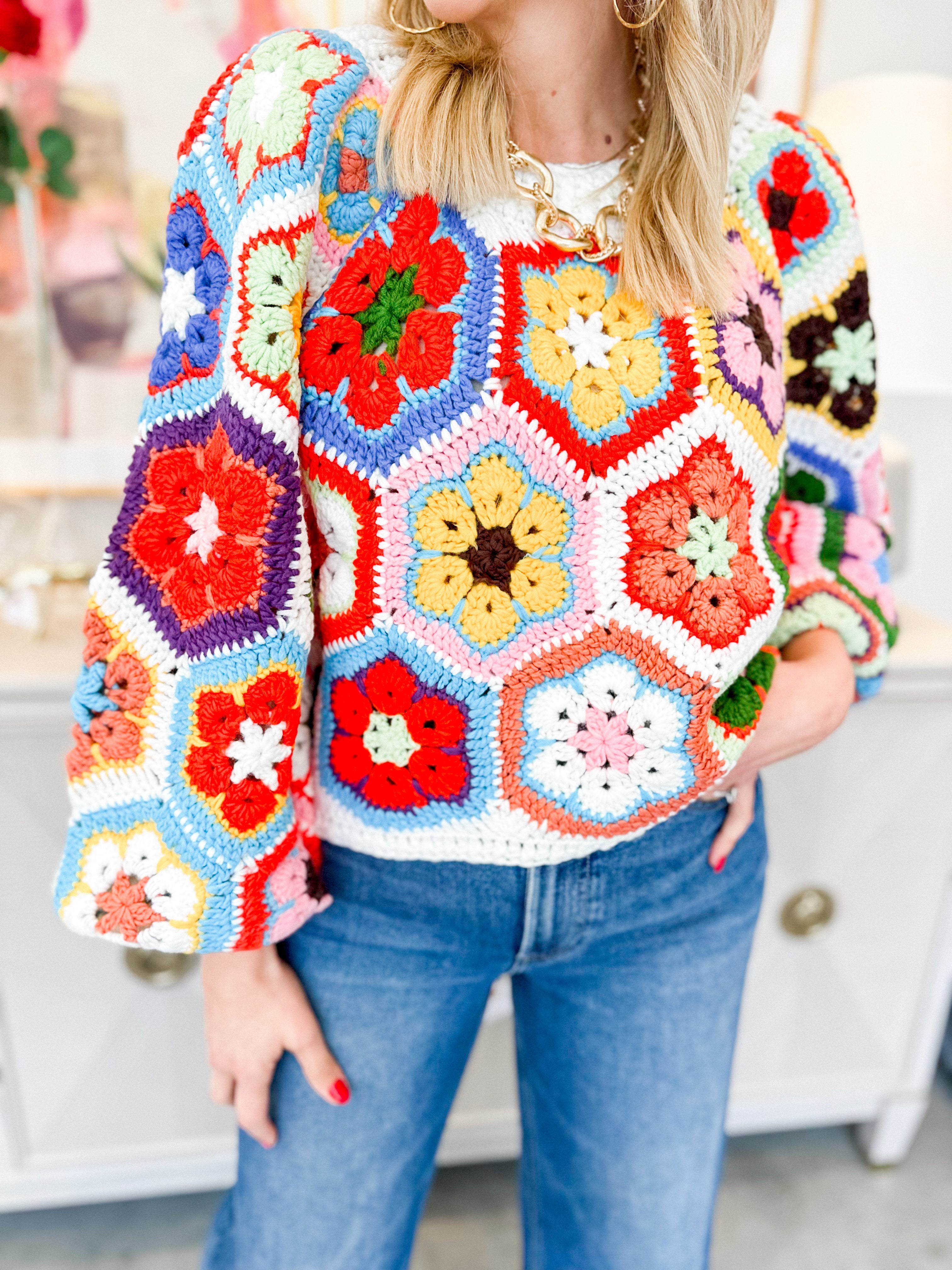 The Lolli Crochet Sweater embodies understated elegance through its handcrafted granny square construction. This refined piece features meticulously joined squares that create a distinctive textured aesthetic, blending retro sensibility with polished design. The structured knit offers versatile styling—equally striking worn solo or layered beneath tailored pieces. Crafted for longevity, this sweater transcends fleeting trends, serving as a sophisticated foundation for a curated wardrobe that celebrates artisanal detail and timeless appeal.