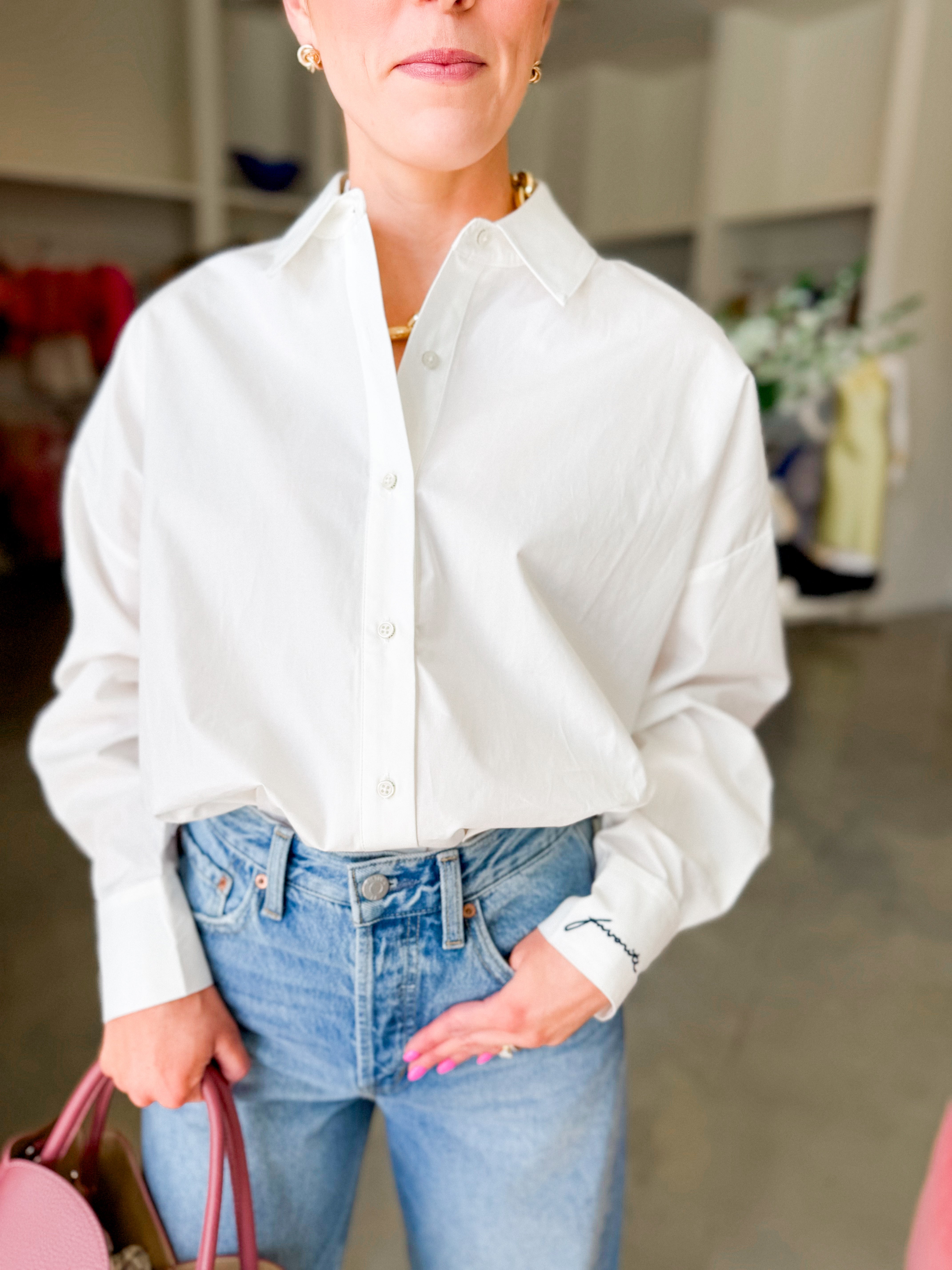 Effortlessly cool and undeniably versatile, the Ex Boyfriend Shirt delivers laid-back elegance with its oversized silhouette and crisp striped poplin construction. Crafted from lightweight cotton, this button-up features a pointed collar, relaxed fit, and subtle back box pleat for understated dimension. Perfect for layering or wearing solo, it's the kind of piece that works as hard as you do—without the drama.