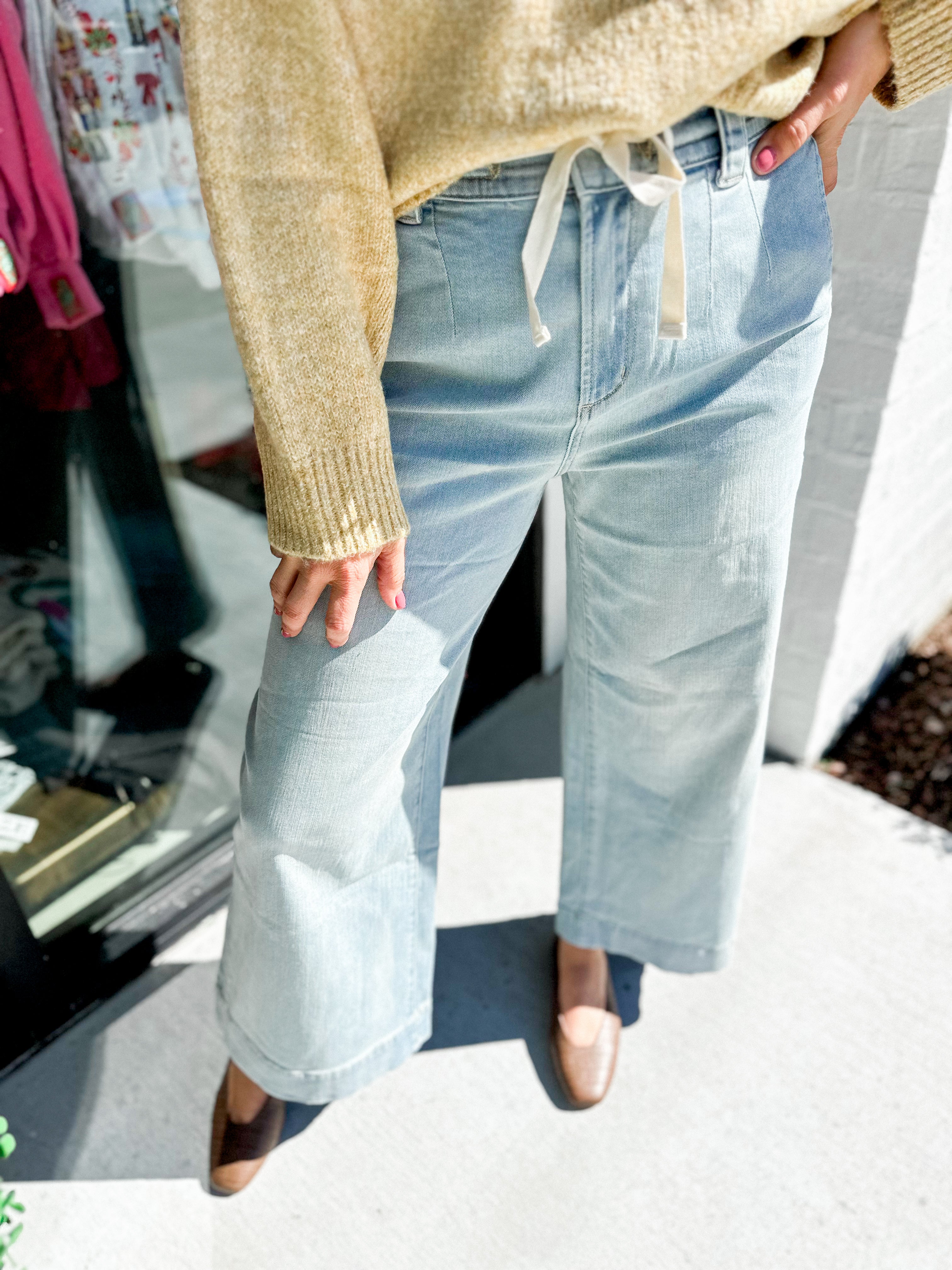 Savannah Denim Pants Meet your new denim obsession! These tie-front pants bring a fun twist to classic denim with an adjustable front tie that lets you customize your fit and vibe. Perfect for those days when you want to look put-together without trying too hard, they pair seamlessly with everything from crop tops to oversized sweaters. Comfortable, versatile, and just the right amount of flirty—because who says denim has to be boring?