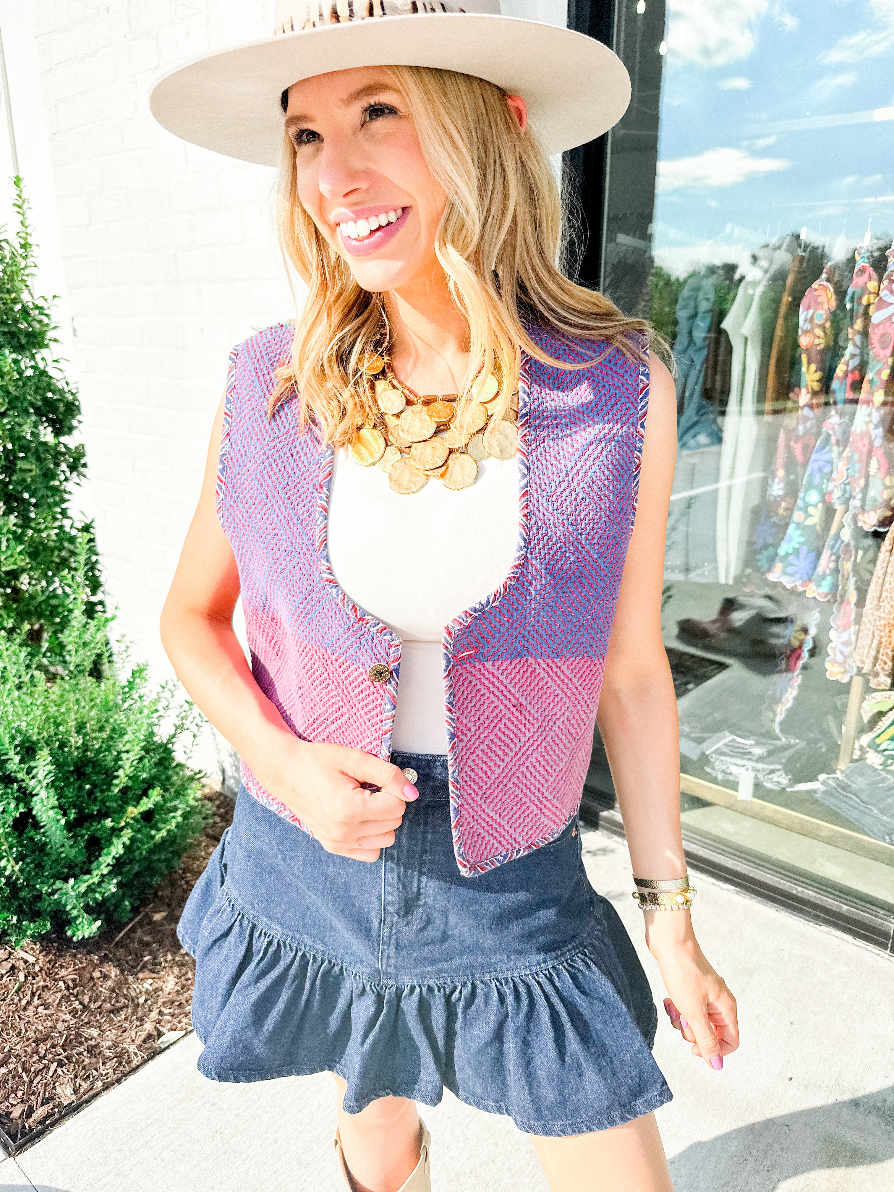 Add a splash of vintage charm to your wardrobe with the Dolly Vest! This playful piece brings retro vibes and endless style possibilities, making it the perfect layer for a fun, fashionable look every day.