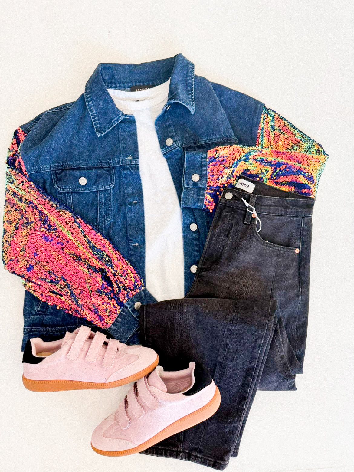 The Esme Denim Jacket combines timeless denim craftsmanship with contemporary flair. Softly washed for an effortlessly refined aesthetic, this jacket features a classic front closure, functional side pockets, and eye-catching sequin detailing along the sleeves. A versatile layer that elevates any ensemble with understated elegance and modern edge.