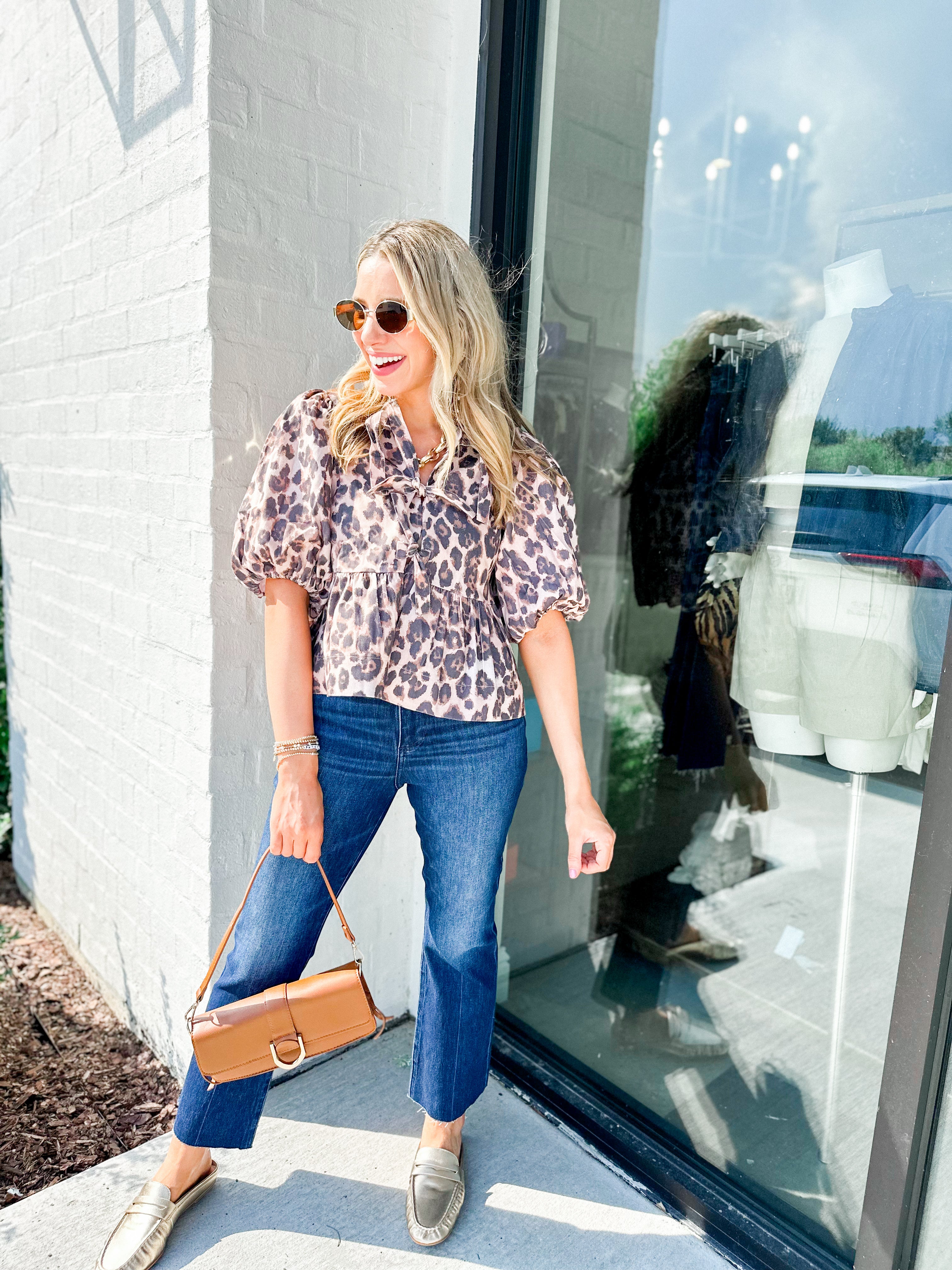 Add a wild touch to your wardrobe with the Leopard Denim Knot Tie Top. This playful piece features a trendy leopard print combined with a stylish denim texture, finished with a knot tie front that flatters your silhouette. Perfect for pairing with jeans or skirts, it brings fun and flair to any casual outing or day out with friends.
