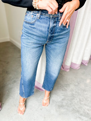 Step into effortless style with the Authentic Westward Barrel Jean. Featuring a dark wash and a trendy barrel leg cut, these jeans bring a playful twist to your everyday look. Perfect for mixing and matching, they offer a flattering fit that moves with you, making them your new go-to for casual days or nights out.