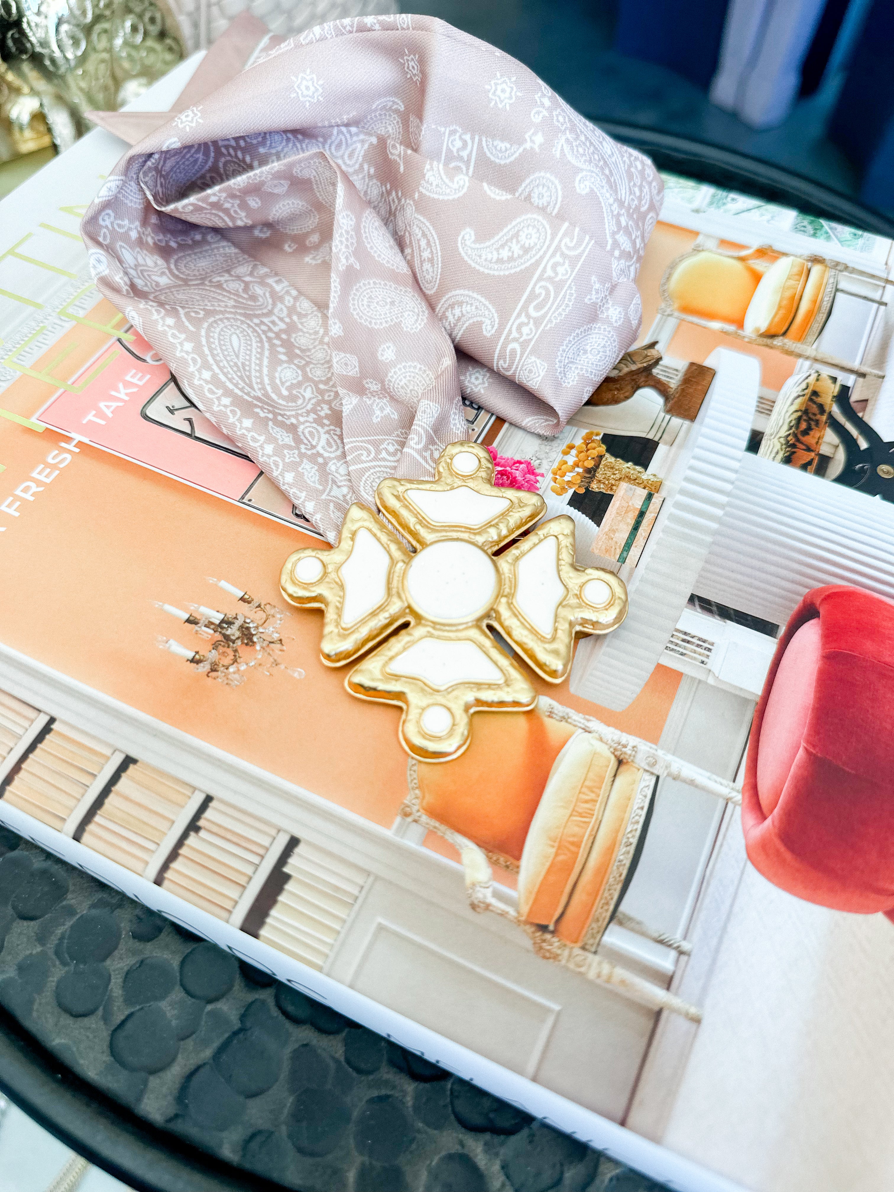 Add a touch of sophistication to any outfit with the In The Fields Brooch. This luxurious gold and white brooch features intricate detailing and adds a subtle yet elegant touch to your ensemble. Perfect for art lovers and fashion enthusiasts alike.