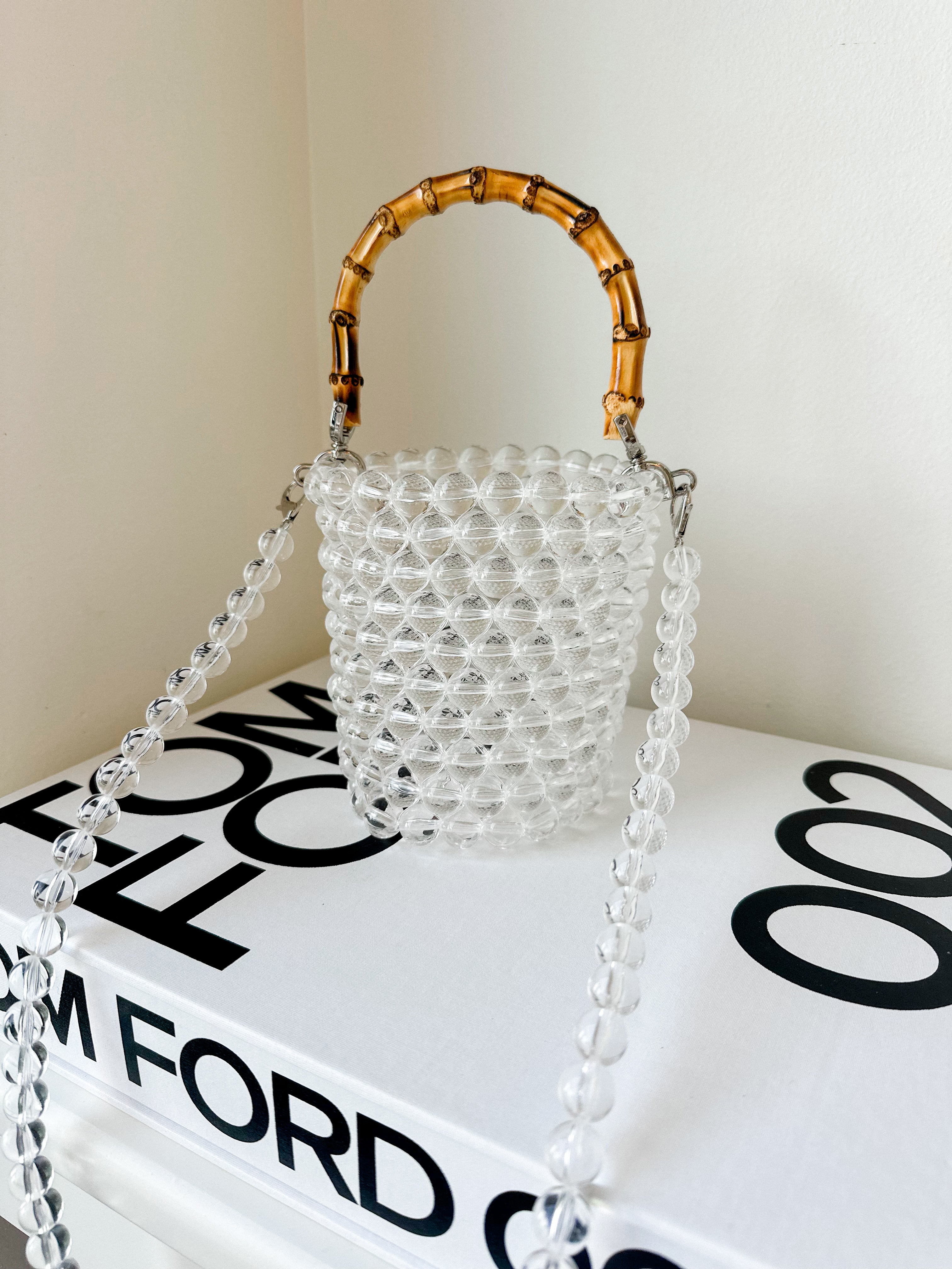 Make a bold statement with the Fashion Forward Clear Purse! This mini bucket bag features a charming bamboo handle and playful beaded details, blending natural vibes with modern style. Perfect for showing off your essentials with a fun, fresh twist.