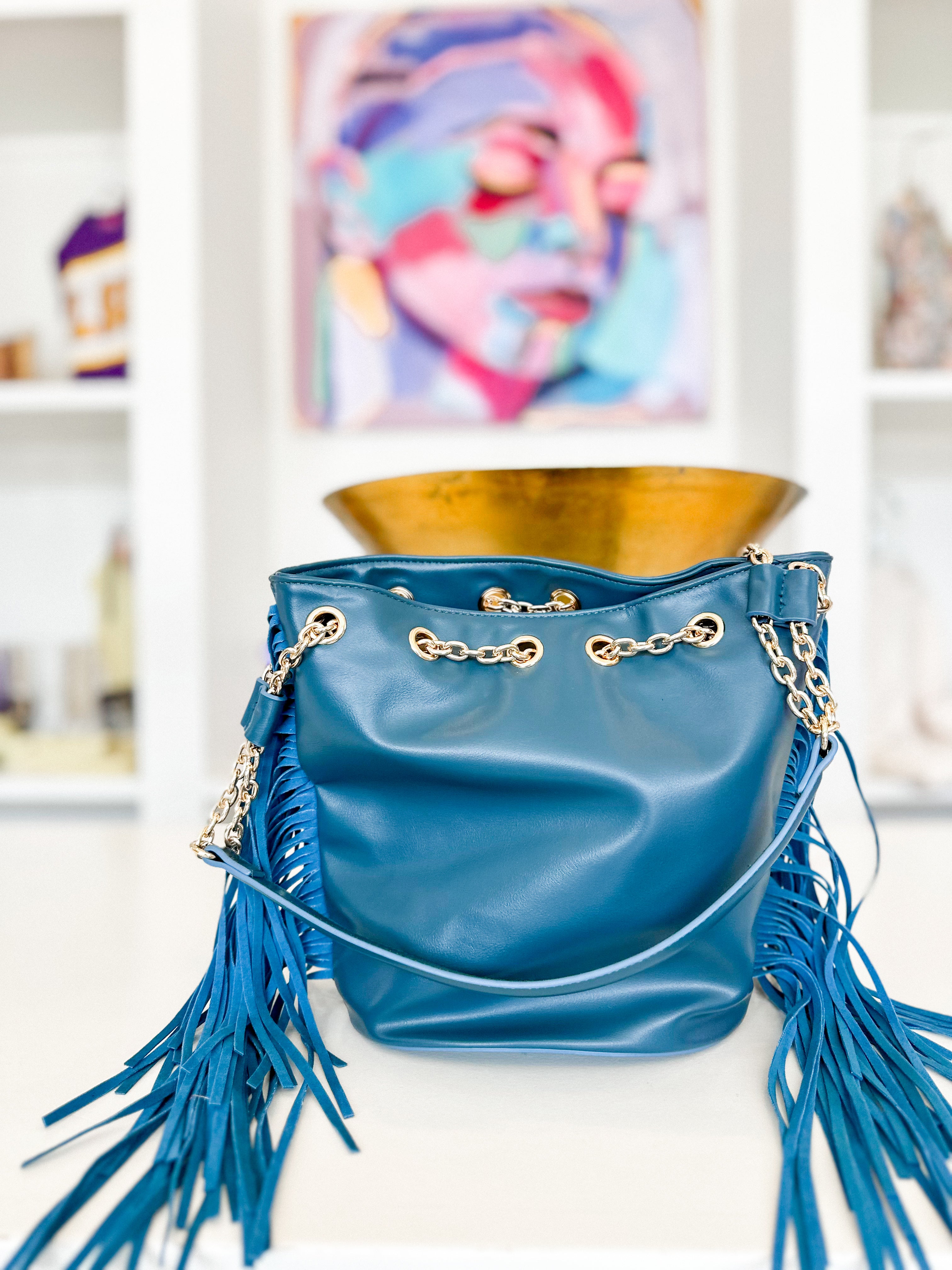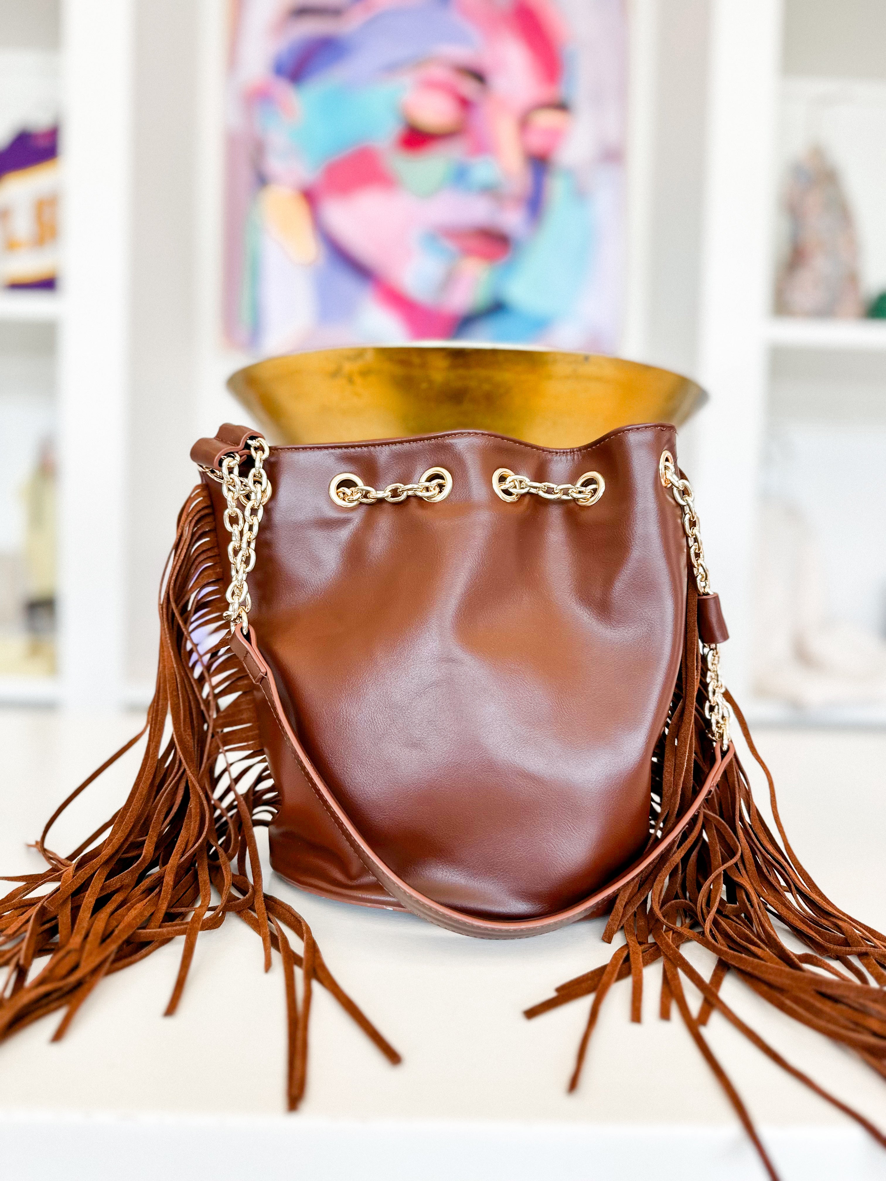 Add a fun twist to your outfit with this Fringe & Chain Bucket Bag. Featuring playful fringe details and a chic chain strap, it’s perfect for carrying your essentials while turning heads. Lightweight and stylish, this bag brings a lively vibe to any look.