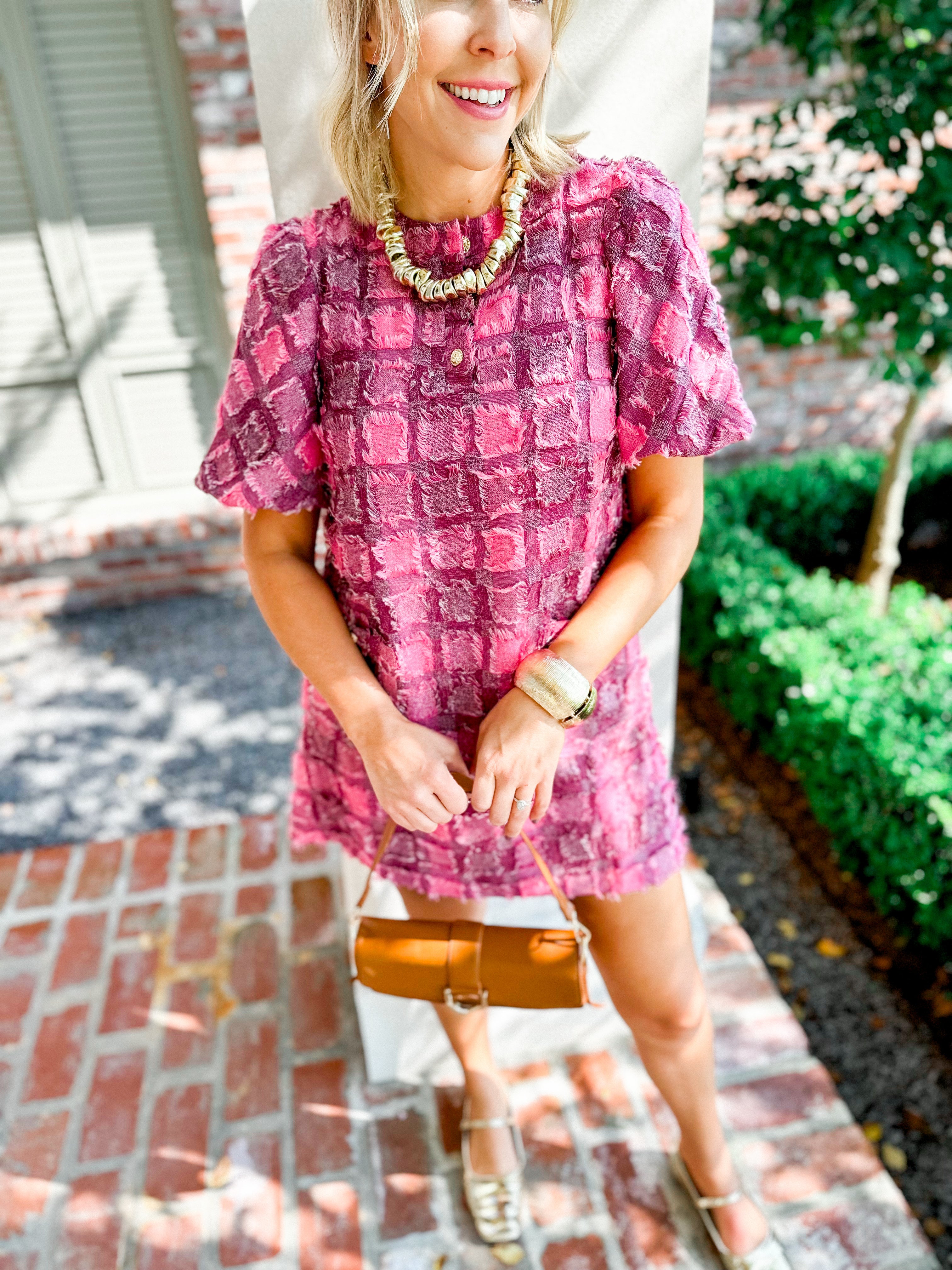 Add a twist to your wardrobe with the Mercer Street Mini Dress, featuring a playful plaid pattern and fun fringe details. Its flirty silhouette highlights your legs while the fringe adds a lively touch that moves with you. Perfect for casual outings or weekend adventures, this dress brings both style and a carefree vibe to your look.
