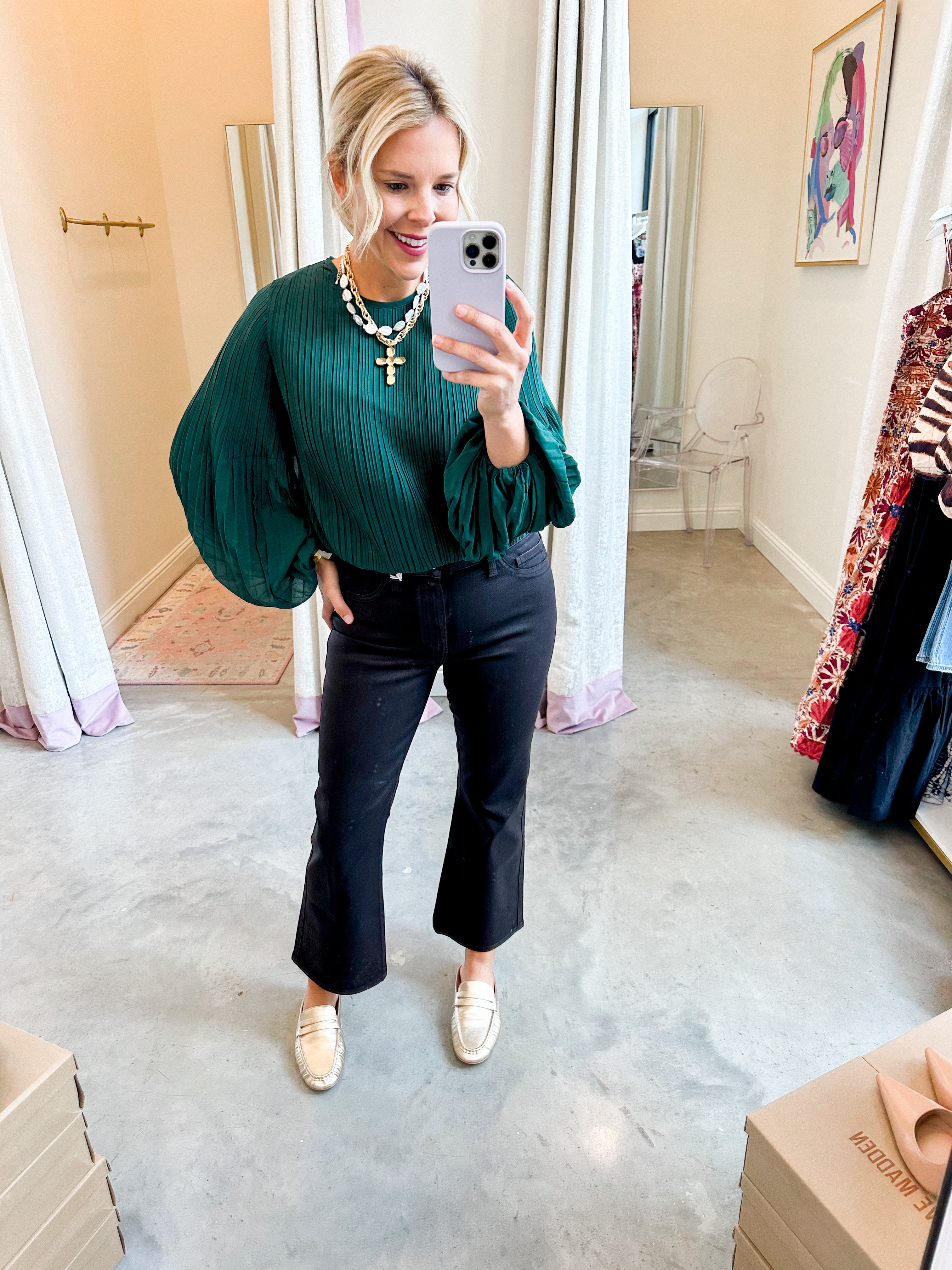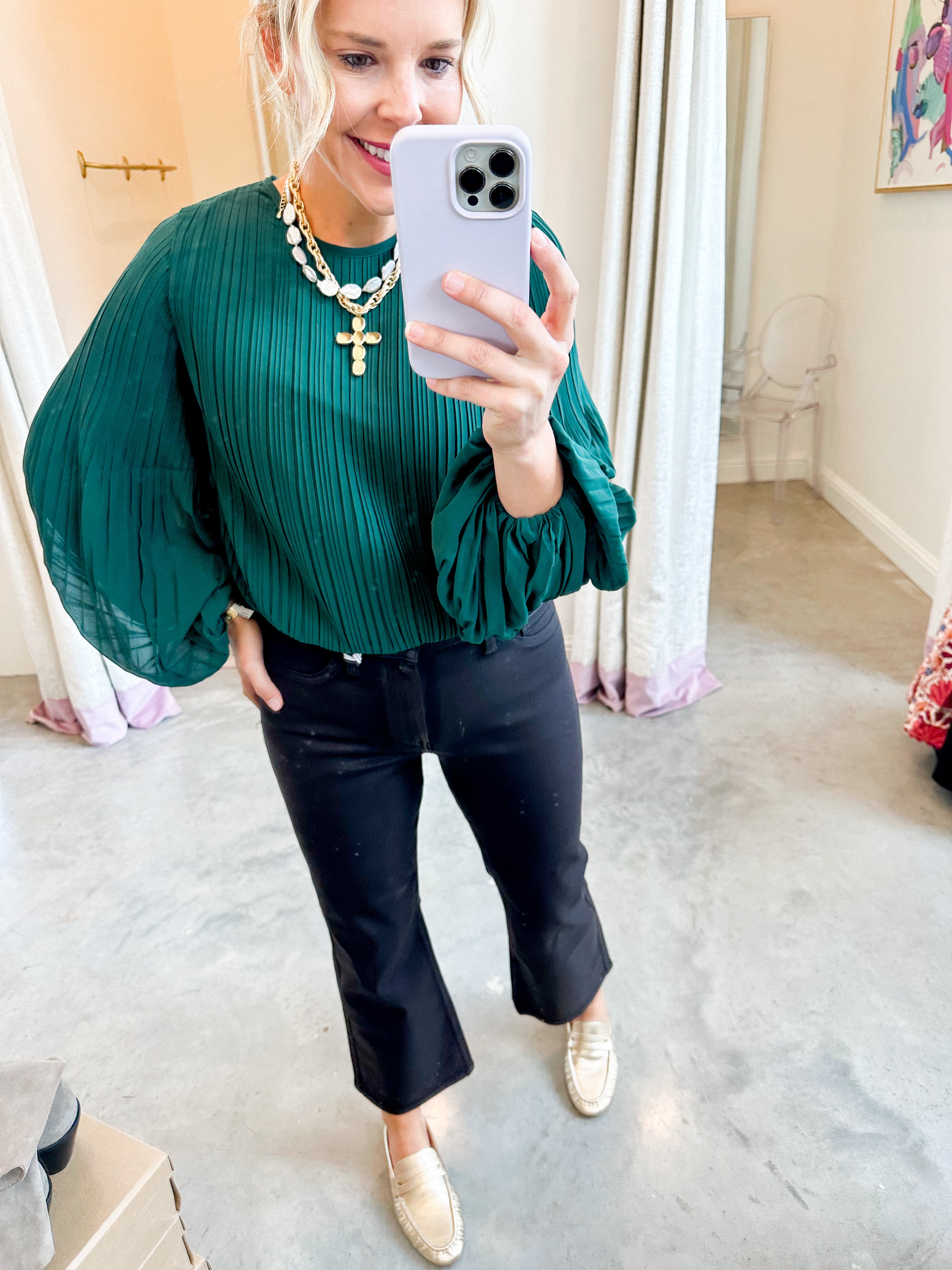 Elevate your wardrobe with the Next Level Top in a rich pine green hue. Crafted for a refined silhouette, this piece combines subtle elegance with comfortable wearability, making it ideal for both professional settings and stylish outings. Its versatile color complements a range of looks, enhancing your ensemble with a sophisticated touch.
