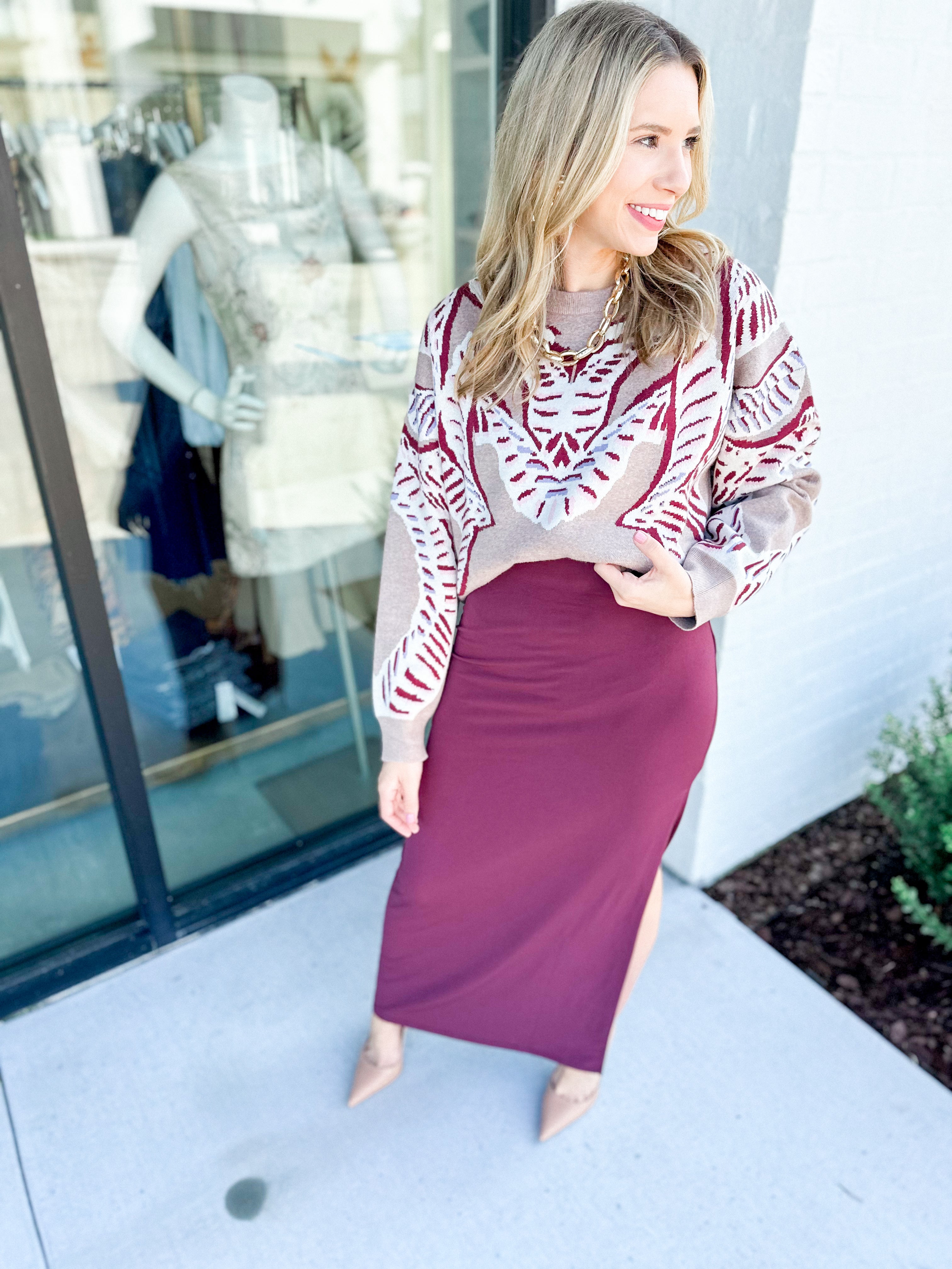Cozy up in the Pandori Sweater, featuring long sleeves and a charming patterned design in a versatile taupe shade. Perfect for adding a playful touch to your everyday look while keeping you warm and comfortable.