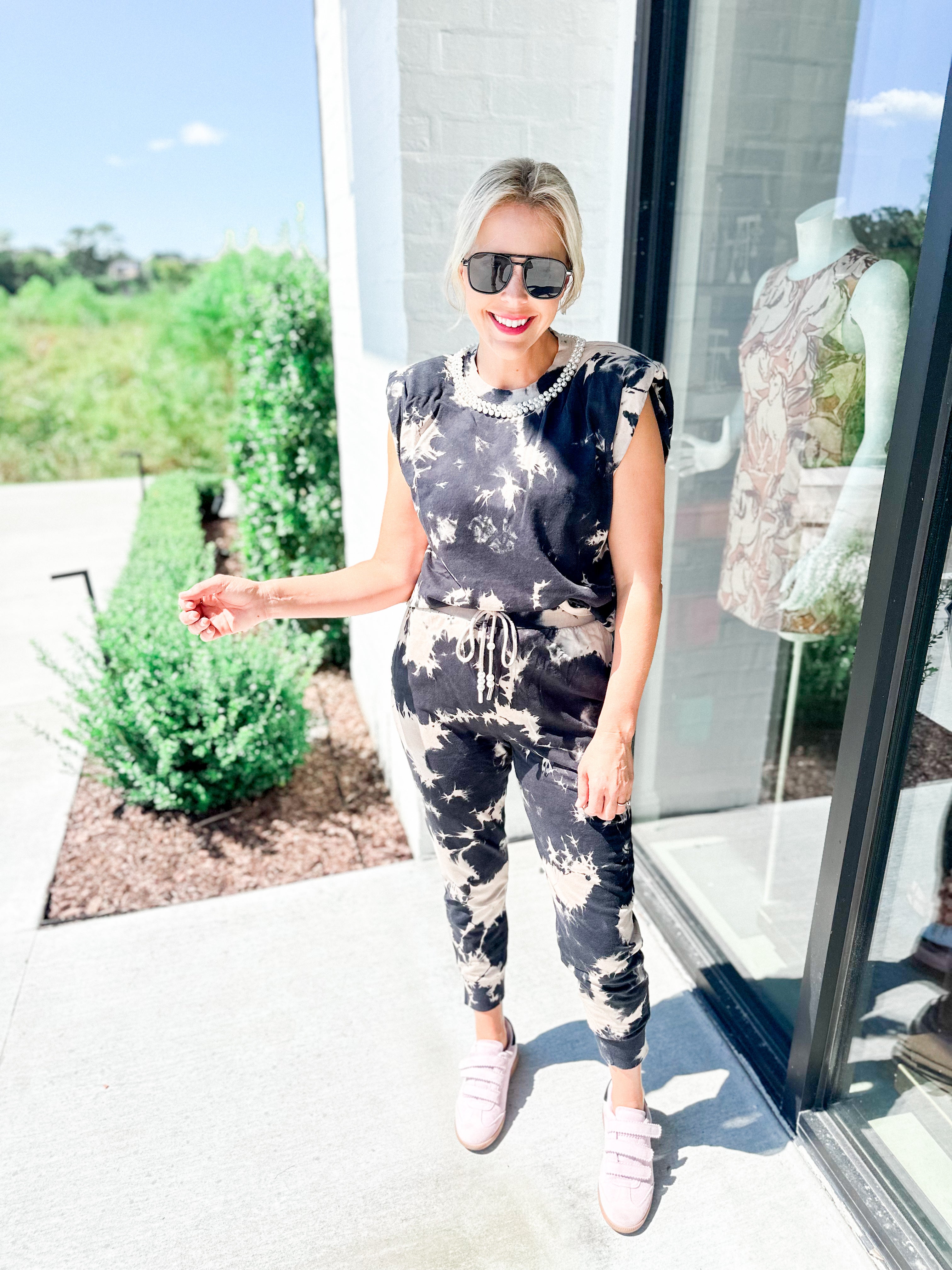 Elevate your wardrobe with the Perla Top, a sleeveless design featuring intricate pearl detailing that adds a refined touch to your look. Perfectly paired with matching joggers, this ensemble balances elegance and comfort, making it an ideal choice for both relaxed and polished occasions. The delicate pearl accents enhance sophistication, while the coordinating jogger completes a chic, cohesive outfit.