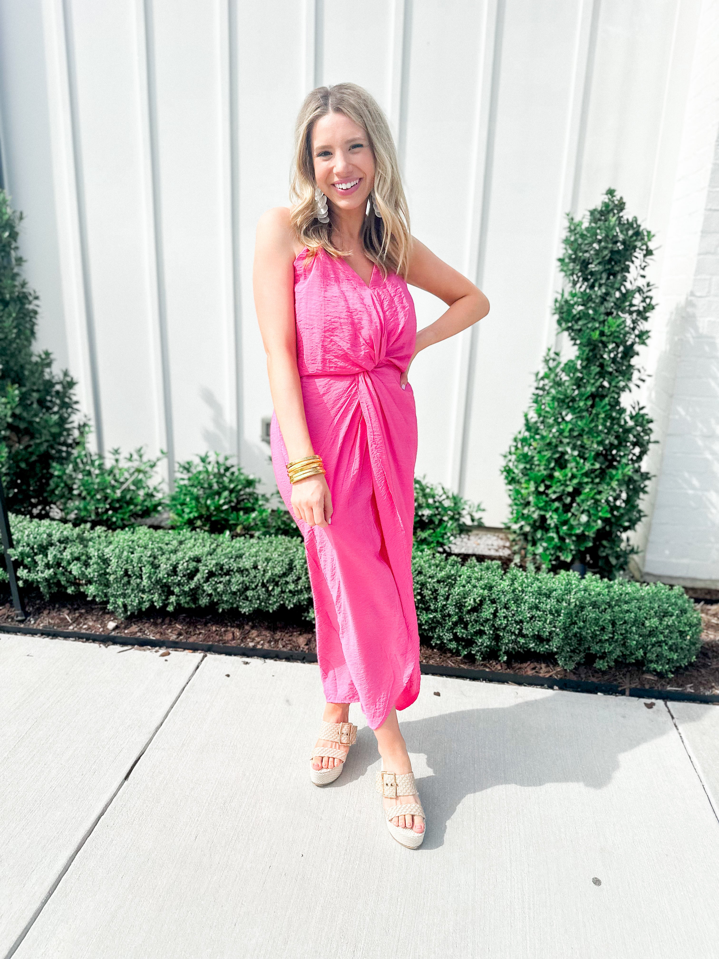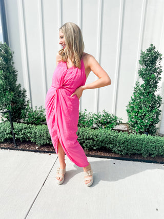 Be the ultimate attention-getter in our Pink Flash Siren Dress! This sleeveless, pink maxi dress will have you turning heads all night long. Dance the night away in style and stand out in the crowd with this playful and eye-catching dress.
