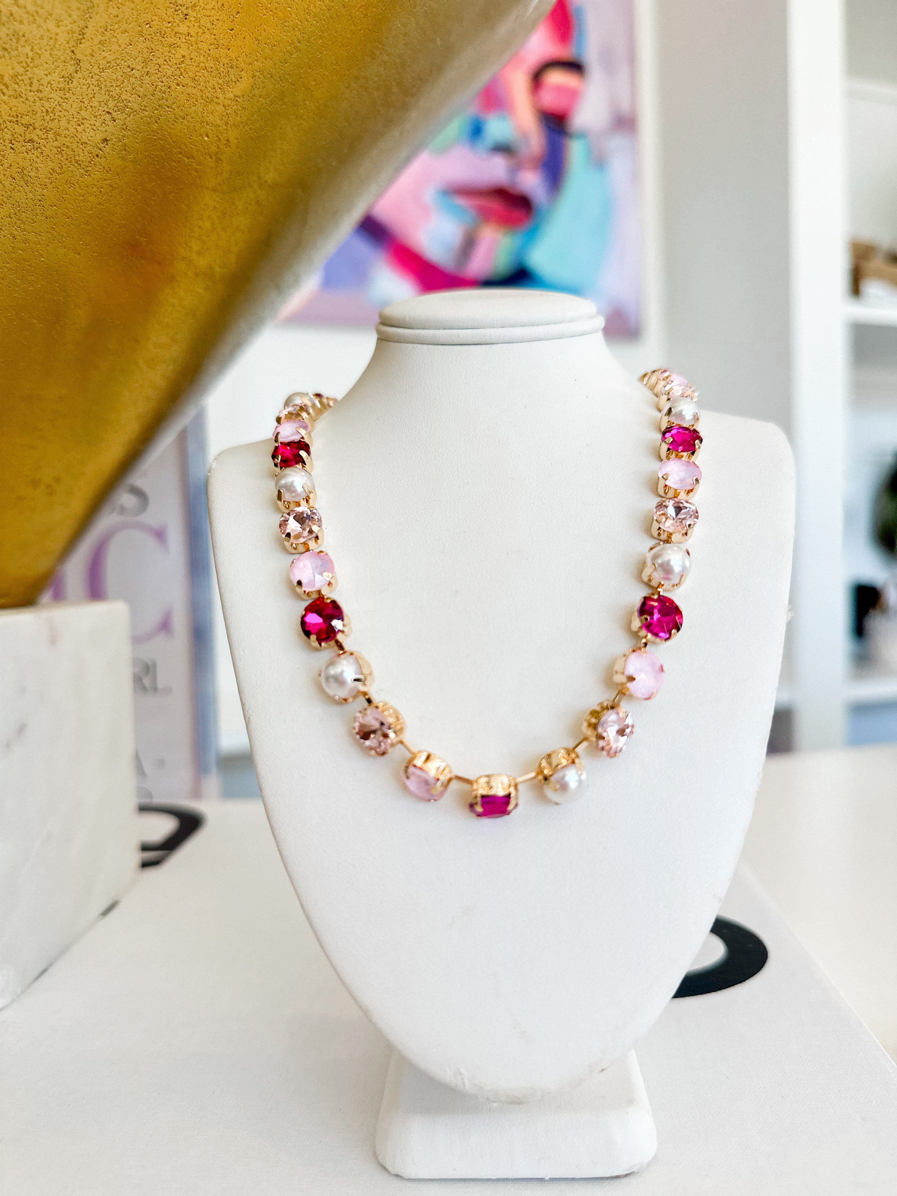 The Soft Glaze Necklace features a graceful arrangement of colorful crystals that catch the light with subtle brilliance. This sophisticated piece adds a refined splash of color, perfect for enhancing both casual and elegant ensembles with delicate charm.