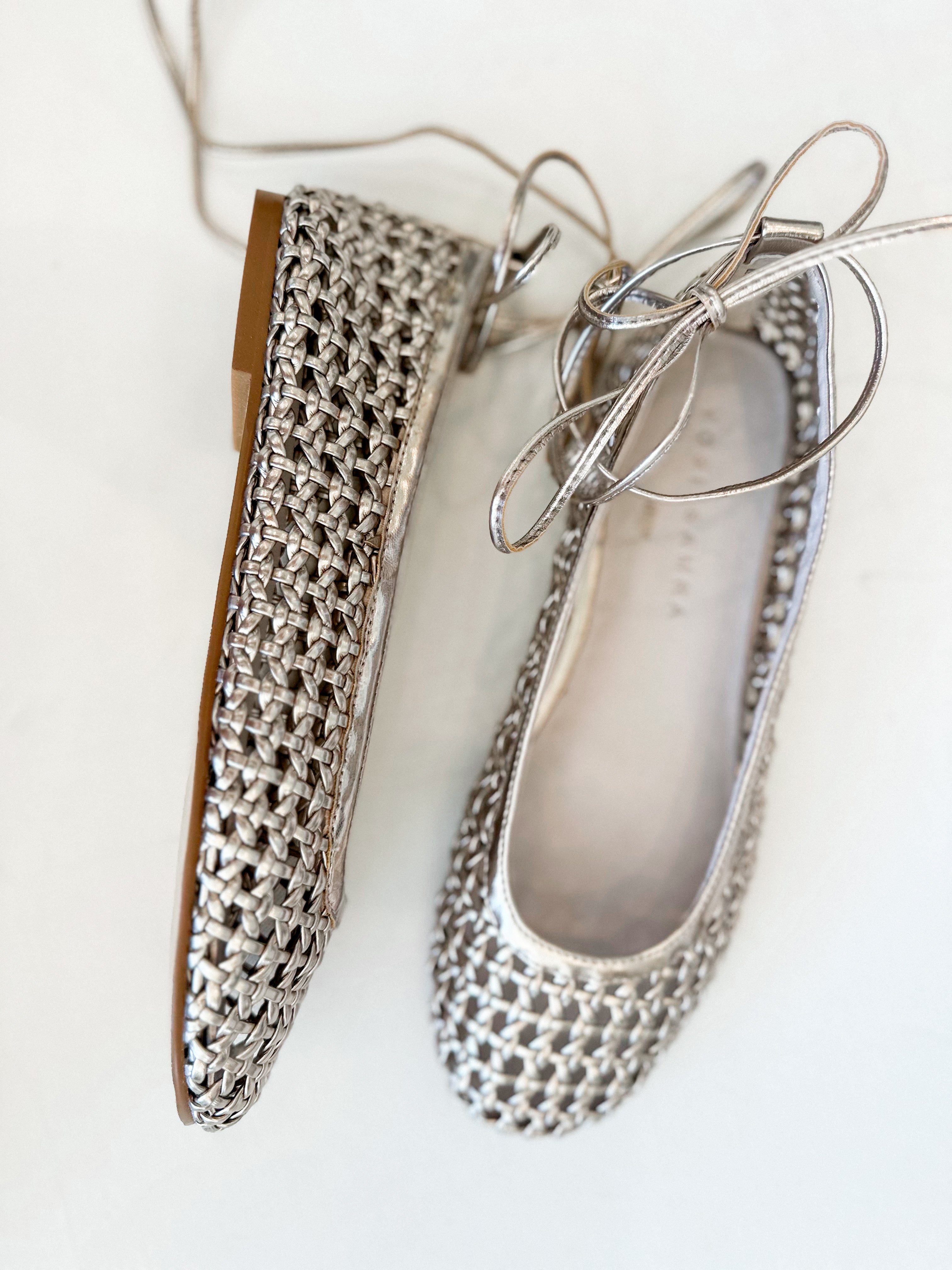 Elevate your ensemble with the Sadie Gold Wrap Flat, featuring a sleek woven gold design and an elegant ankle wrap detail. This sophisticated flat offers a refined touch of shimmer while providing secure, comfortable support for all-day wear. Perfect for adding a subtle yet striking finish to both casual and dressy outfits.
