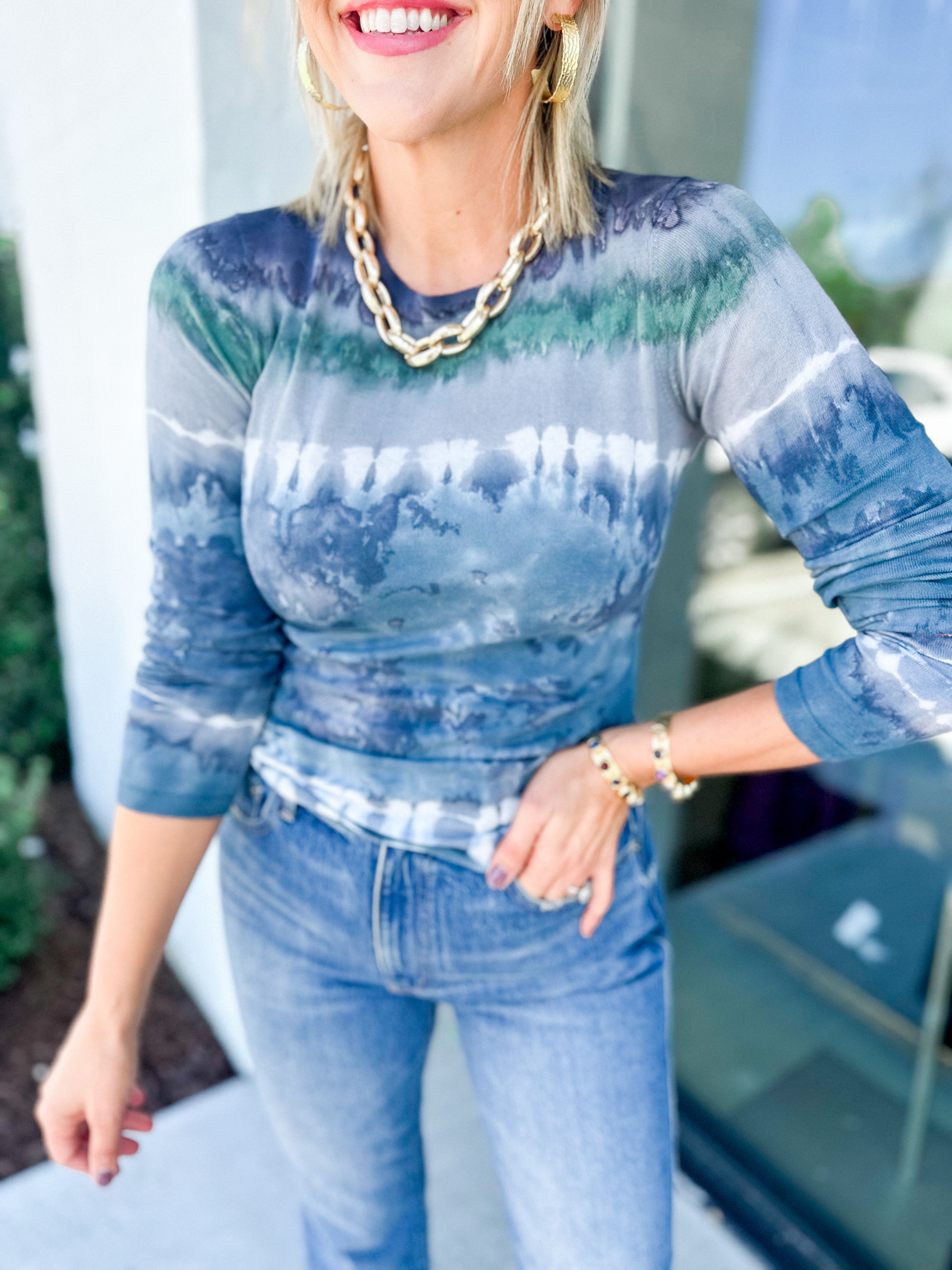 Add a splash of fun to your wardrobe with the Terra Wash Knit Tee. This long sleeve tee features a vibrant blue tie-dye pattern that brings a playful, laid-back vibe to any outfit. Crafted from soft, breathable fabric, it’s perfect for cozy days or casual adventures. Embrace effortless style with a twist of color!