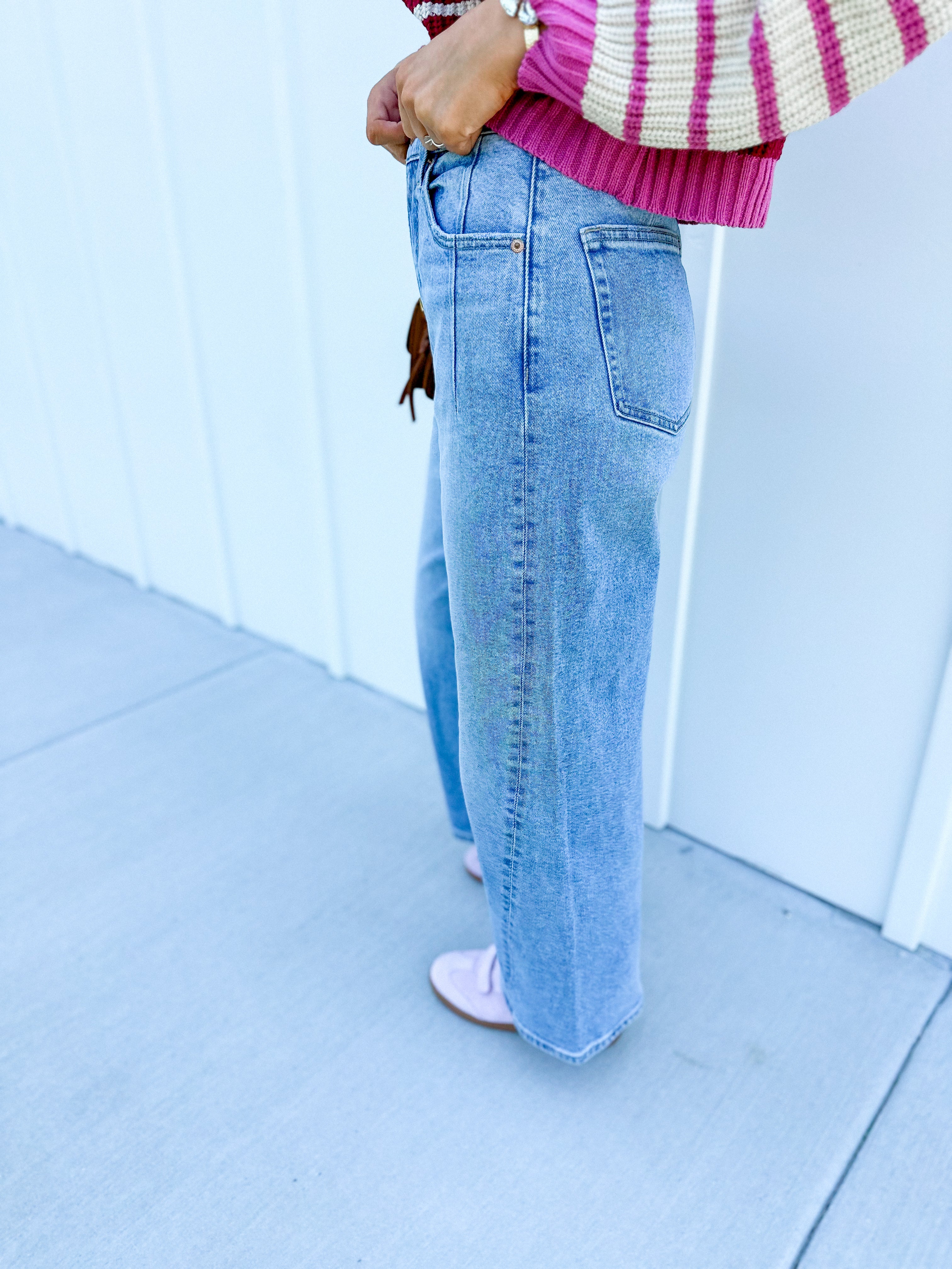 Elevate your casual wardrobe with the Terrace Kyra Jean, featuring a light wash and distinctive bowed silhouette. Crafted for a refined yet relaxed look, these jeans offer subtle shaping that flatters the figure while maintaining comfort throughout the day. Perfectly paired with both tailored blouses and effortless tees, they bring a sophisticated edge to everyday styling.
